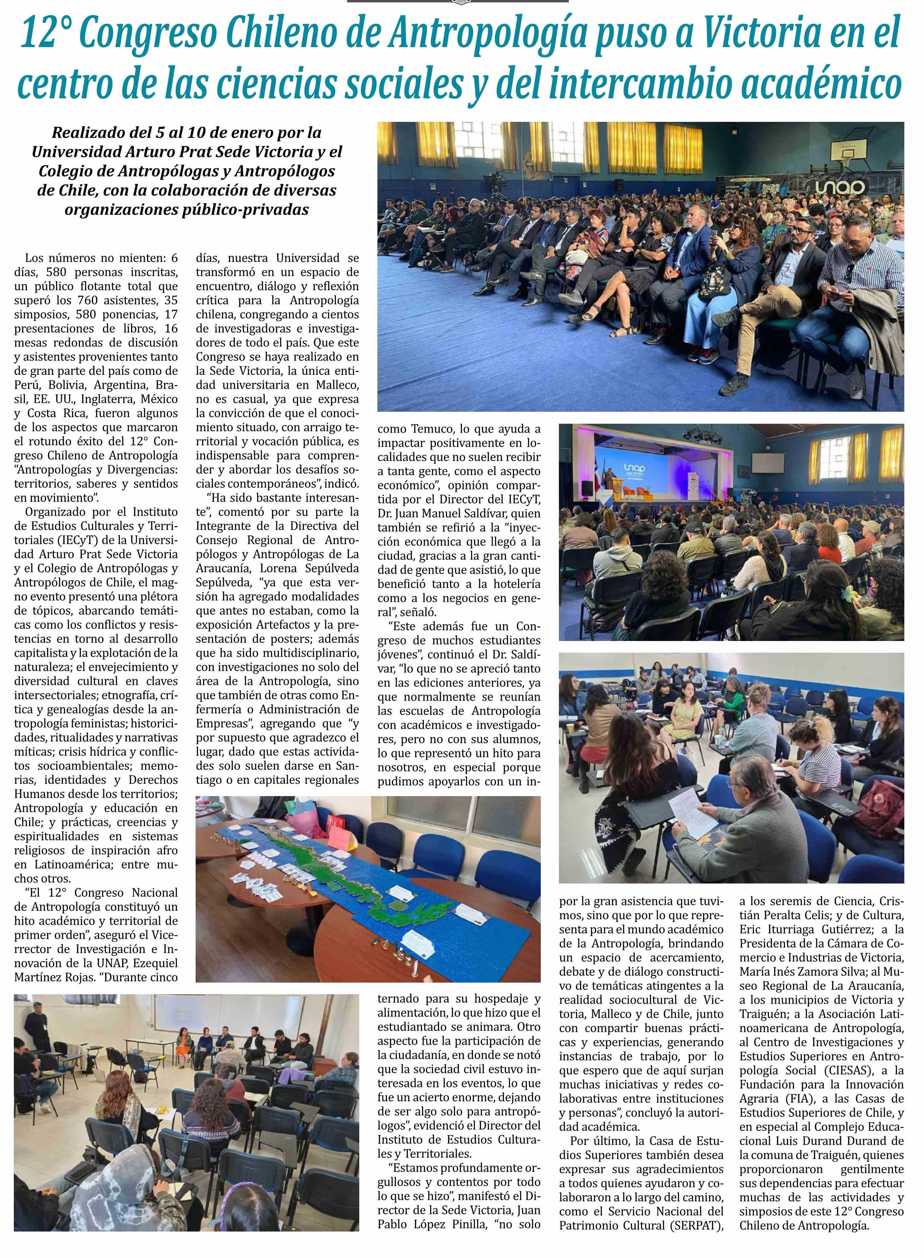 Título: 12º Congreso Chileno de Antropología puso a Victoria en el centro de las ciencias sociales y del intercambio académico