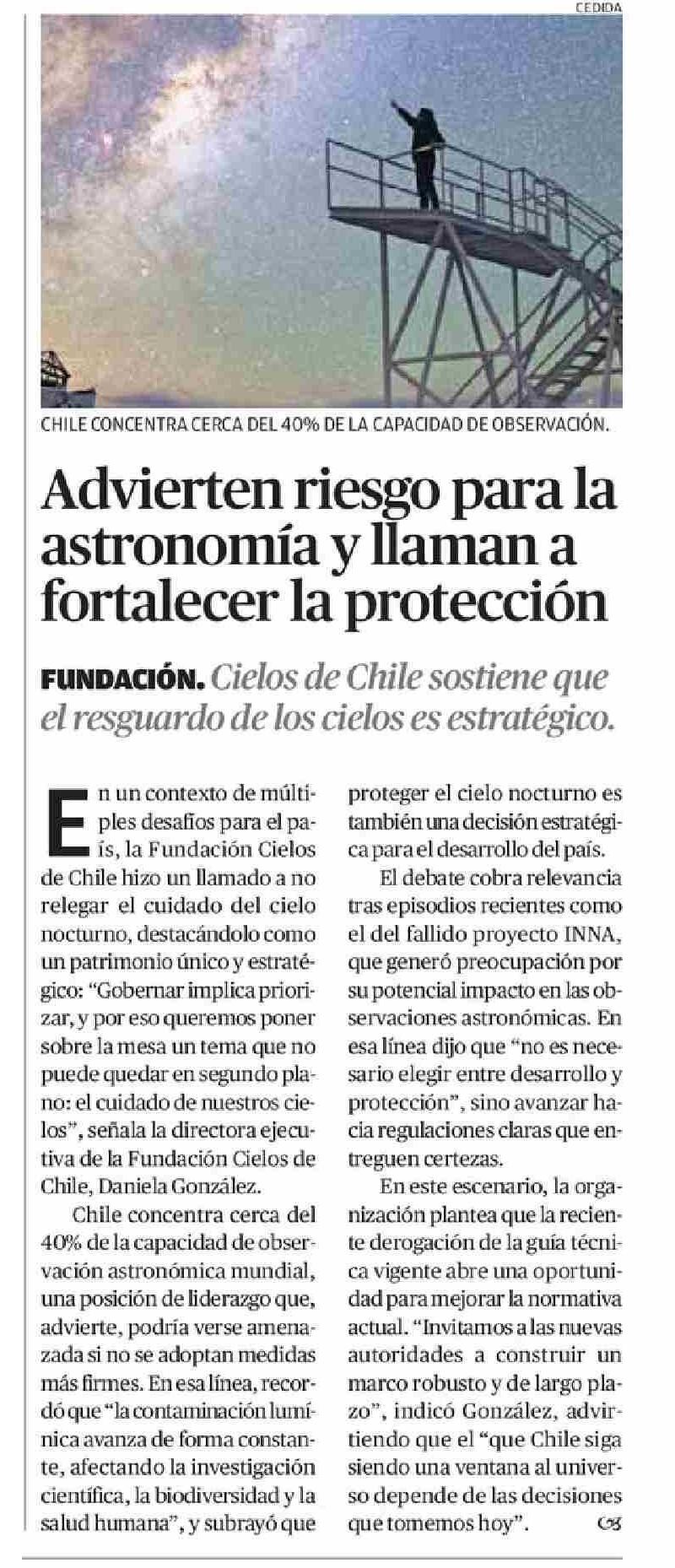 Advierten riesgo para la astronomía y llaman a fortalecer la protección