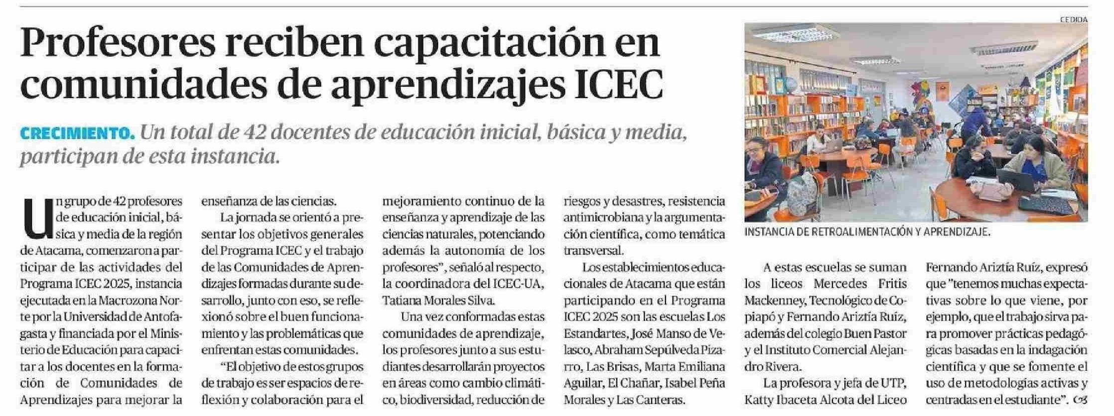 Profesores reciben capacitación en comunidades de aprendizajes ICEC