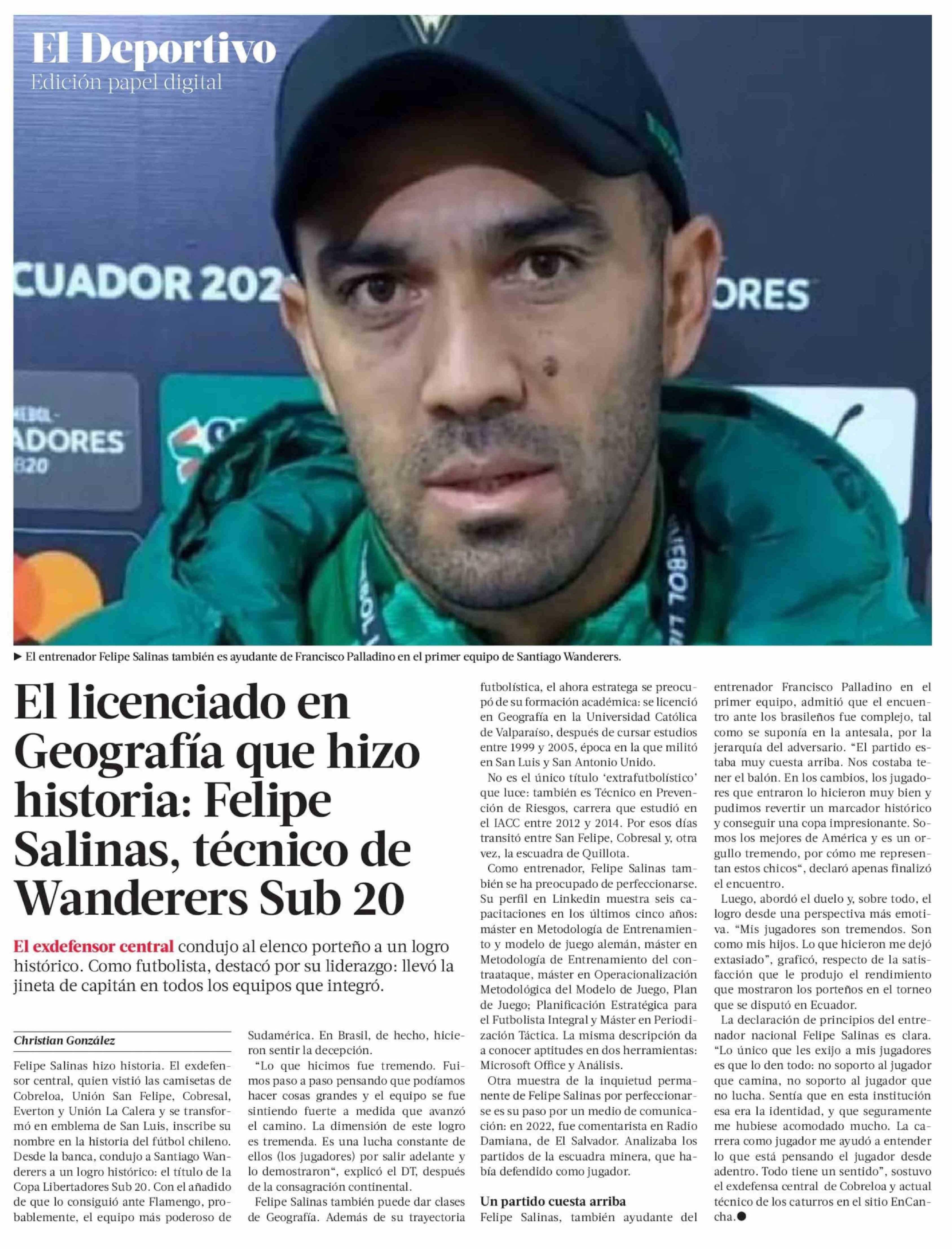 El licenciado en Geografía que hizo historia: Felipe Salinas, técnico de Wanderers Sub 20