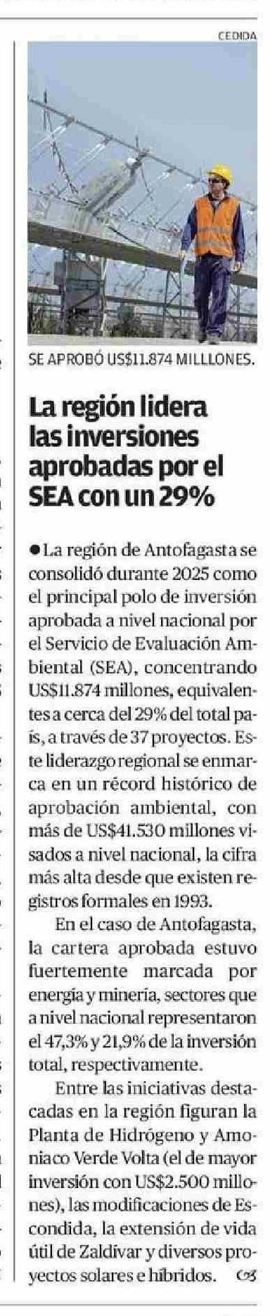 La región lidera las inversiones aprobadas por el SEA con un 29%