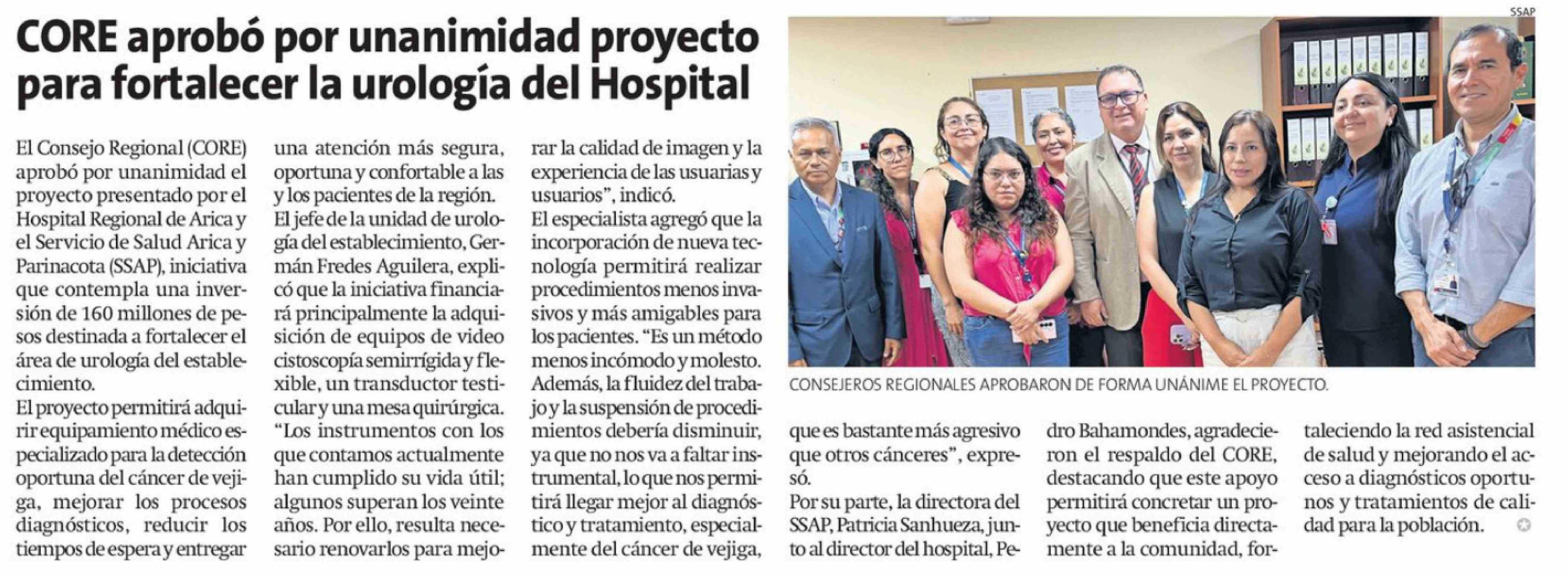 CORE aprobó por unanimidad proyecto para fortalecer la urología del Hospital