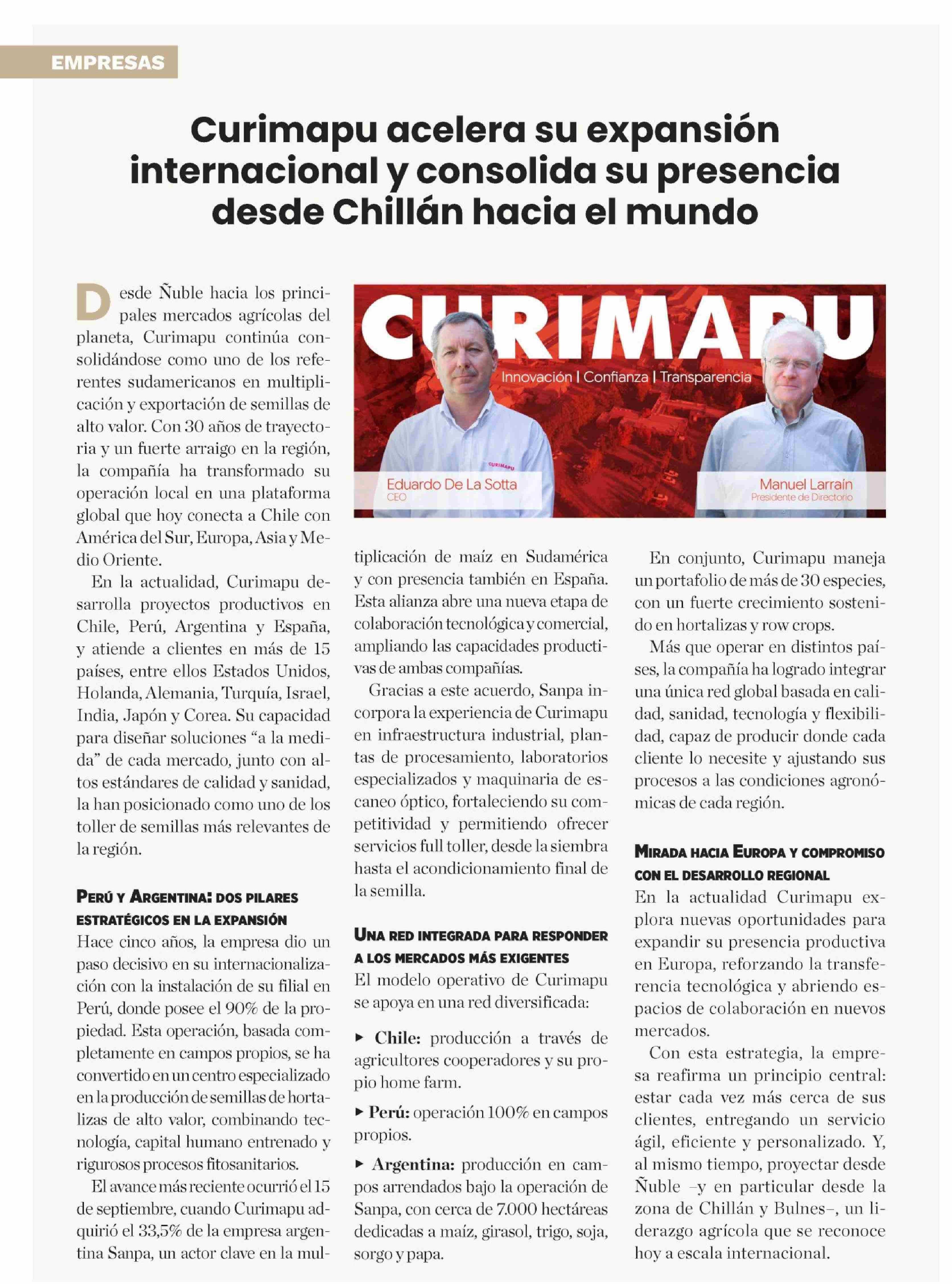 Curimapu acelera su expansión internacional y consolida su presencia desde Chillán hacia el mundo