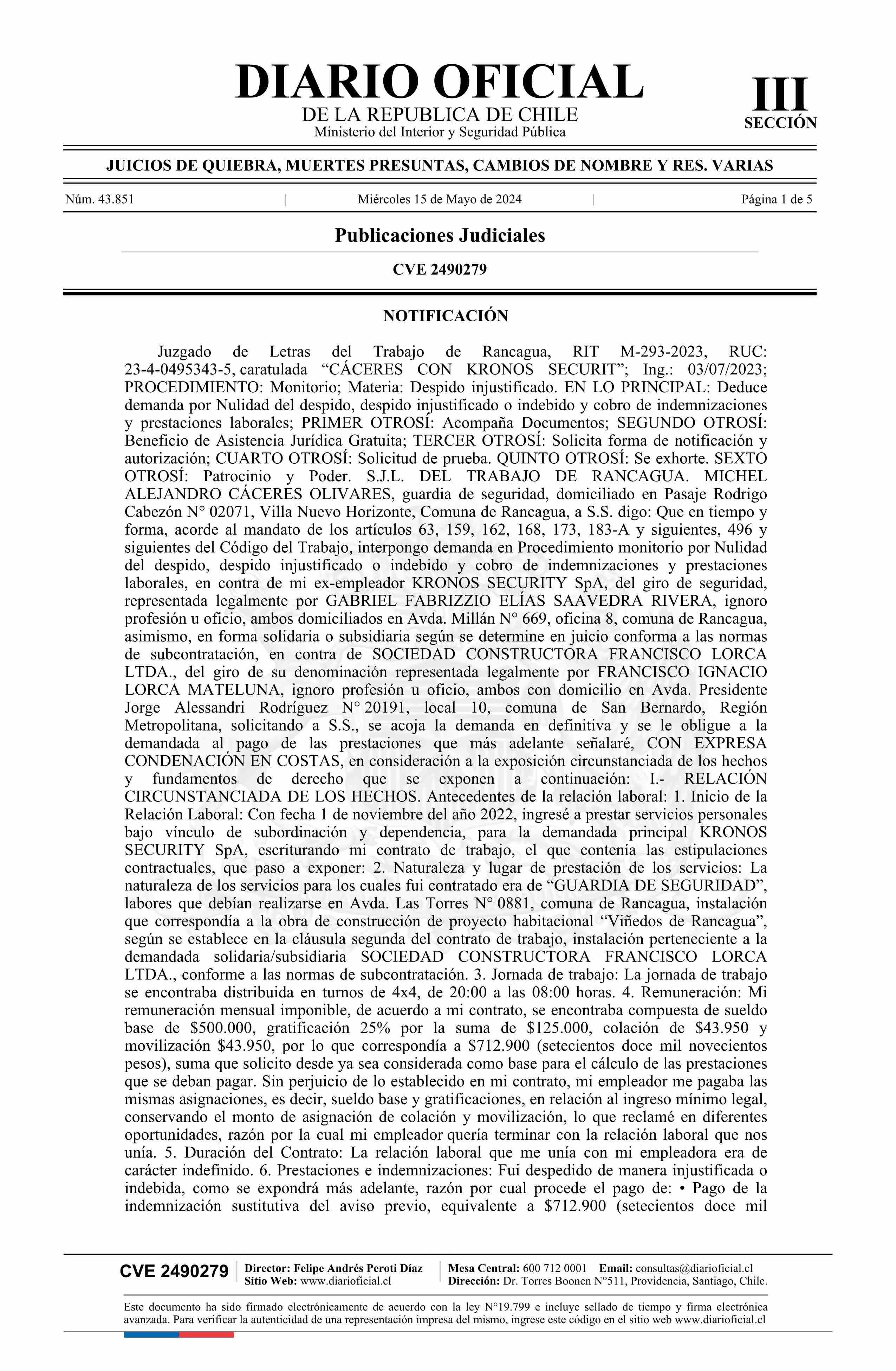 Cáceres Olivares Michel Alejandro - Kronos Security SpA
