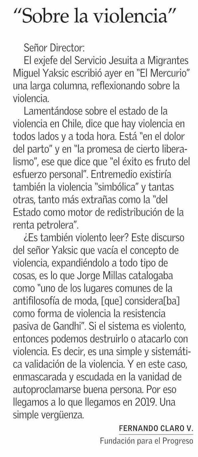 CARTAS: "Sobre la violencia"