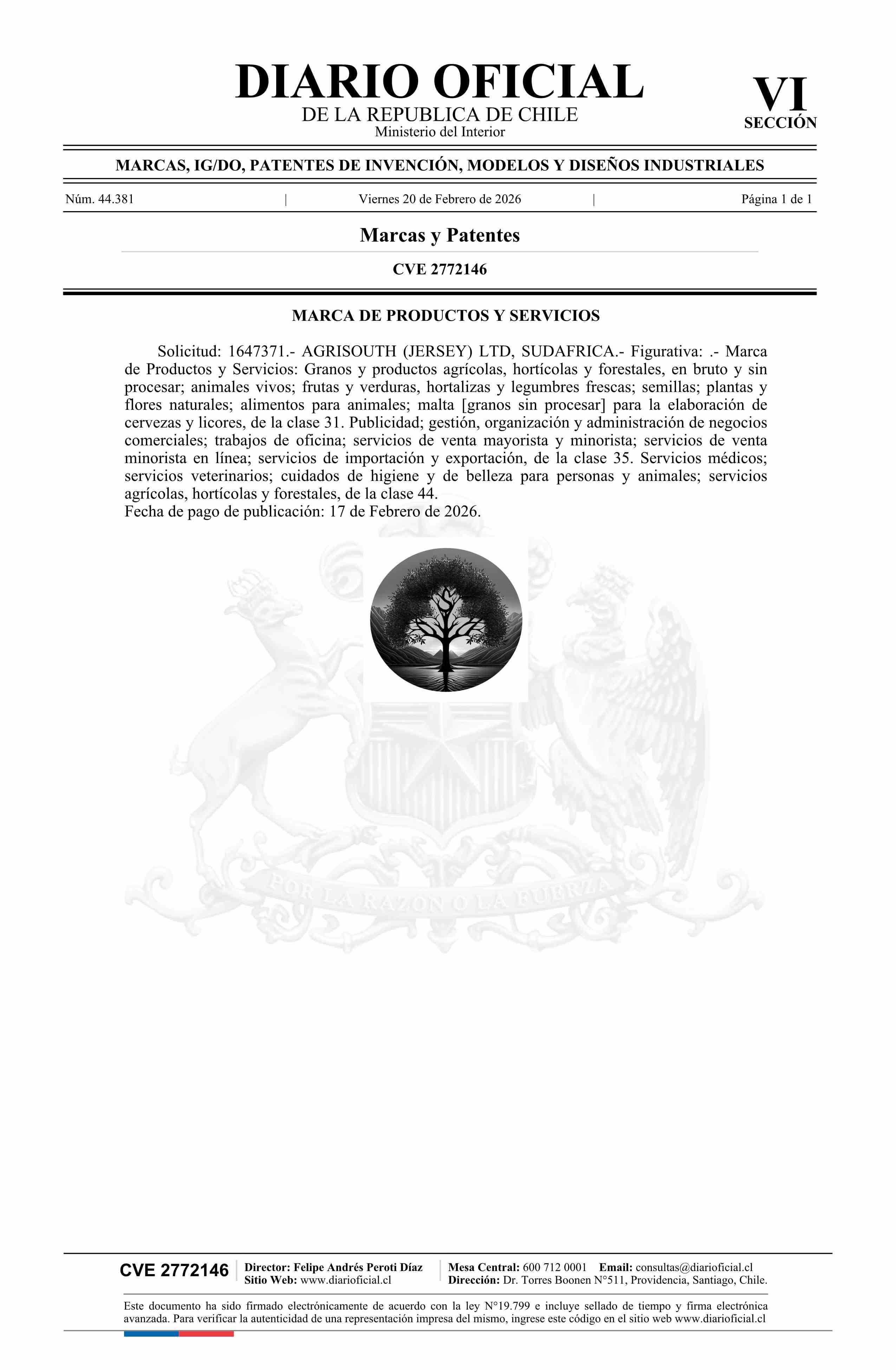 Solicitud número 1647371.- AGRISOUTH (JERSEY) LTD