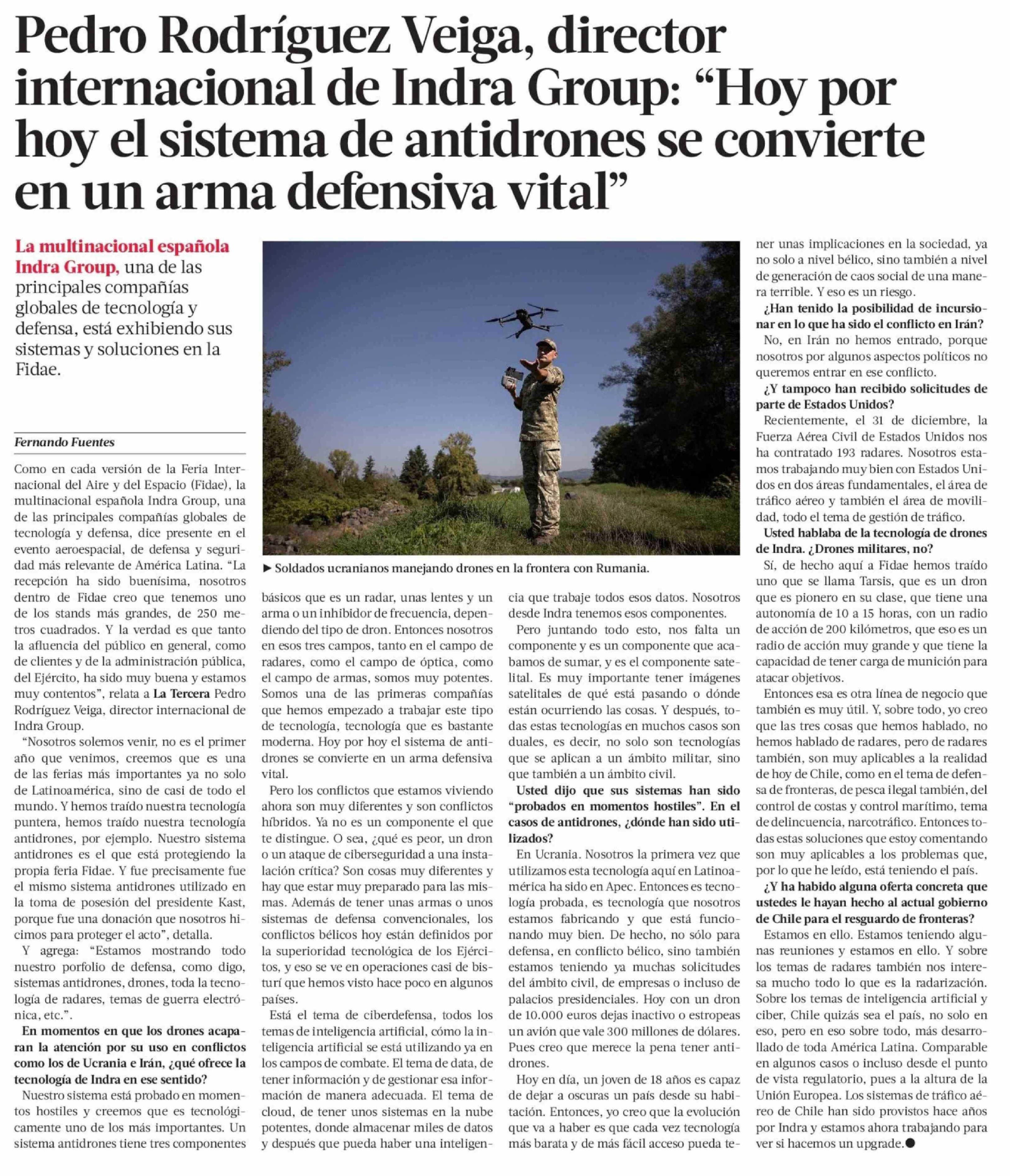 Título: Pedro Rodríguez Veiga, director internacional de Indra Group: "Hoy por hoy el sistema de antidrones se convierte en un arma defensiva vital"