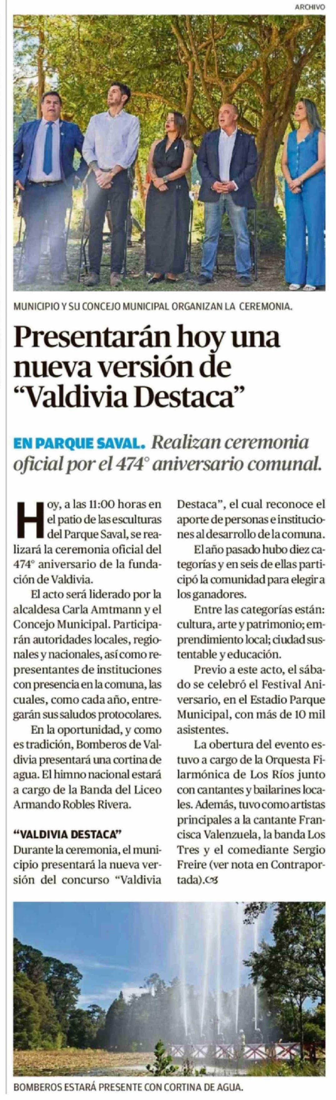 Presentarán hoy una nueva versión de "Valdivia Destaca"