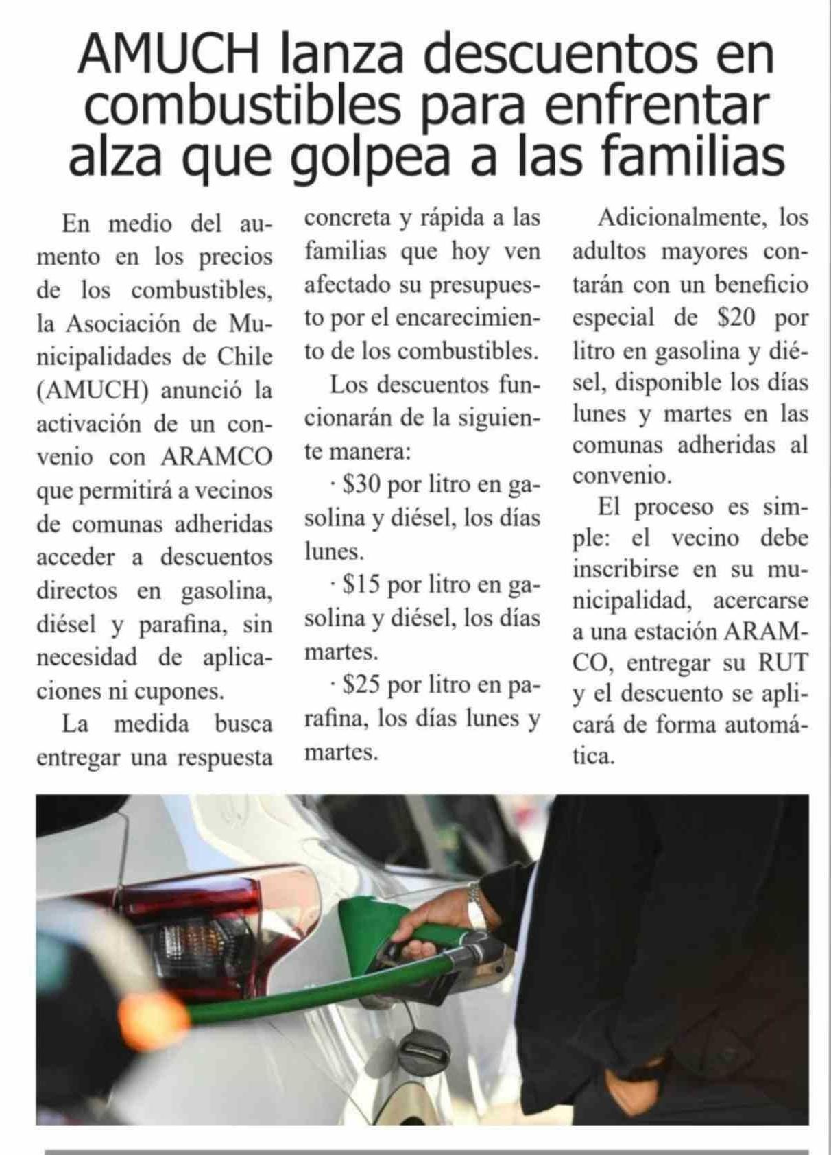 AMUCH lanza descuentos en combustibles para enfrentar alza que golpea a las familias