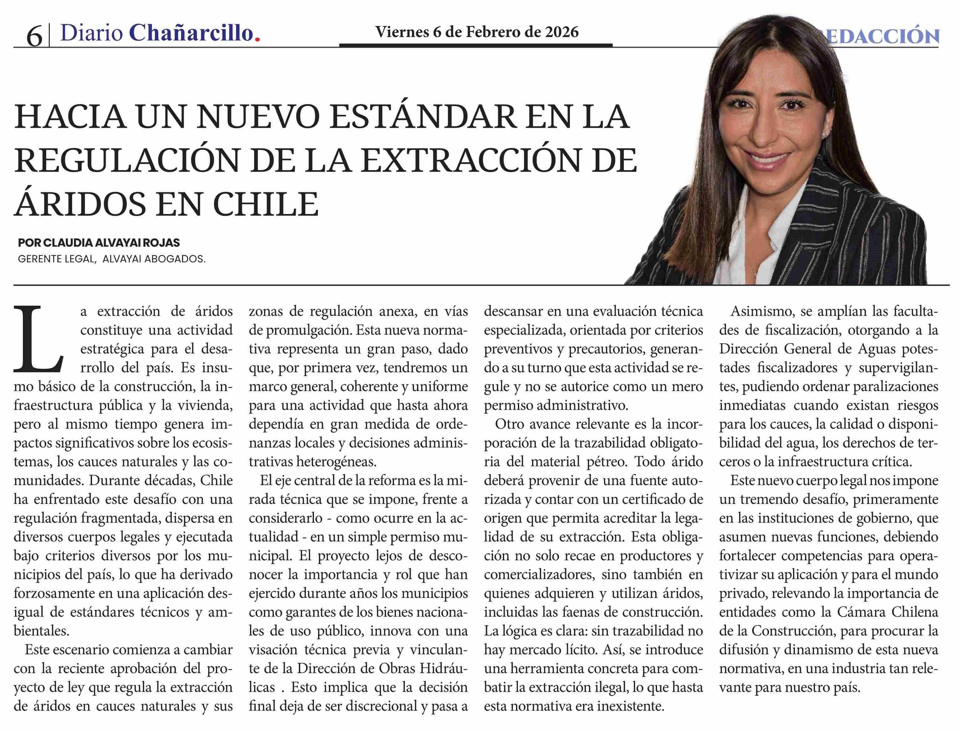 Columnas de Opinión: HACIA UN NUEVO ESTÁNDAR EN LA REGULACIÓN DE LA EXTRACCIÓN DE ÁRIDOS EN CHILE