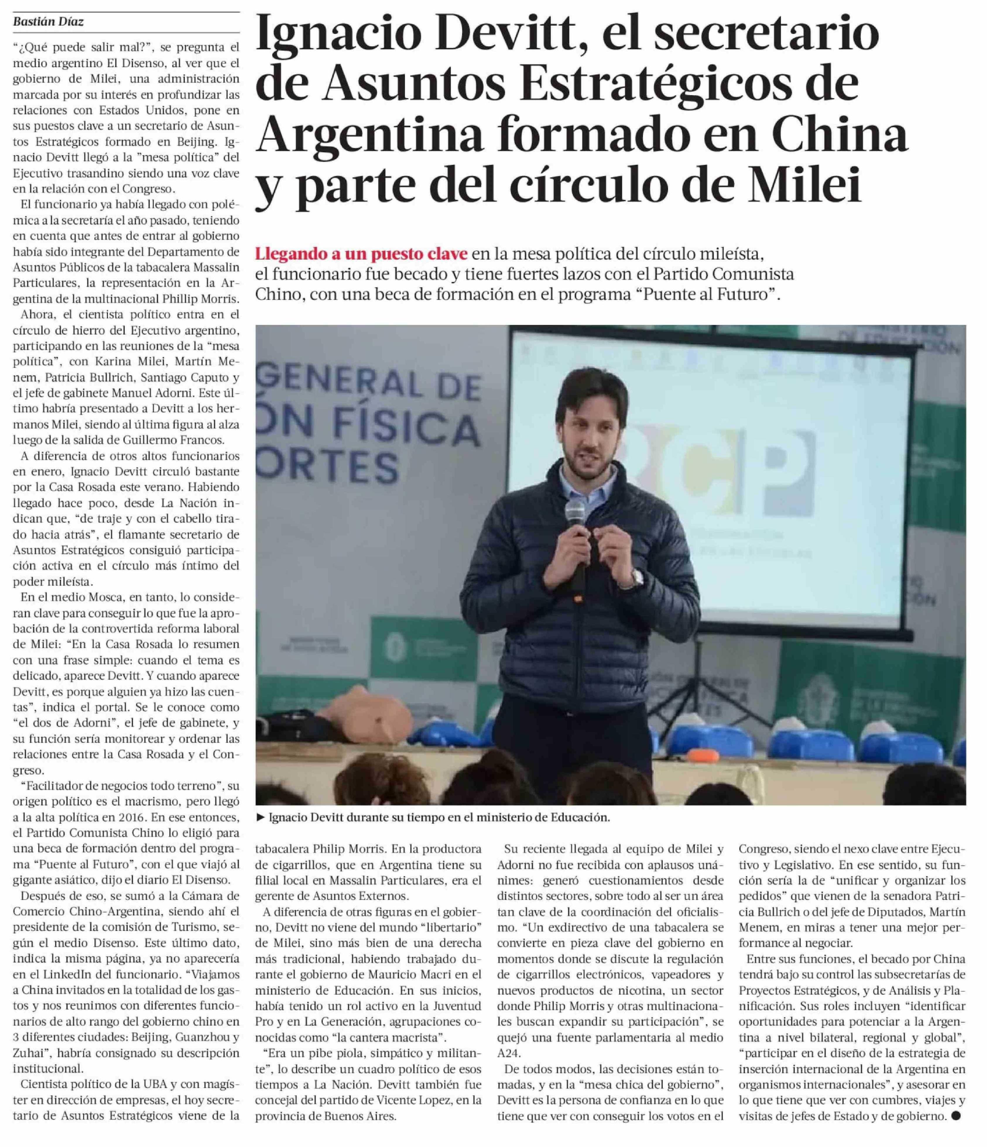Ignacio Devitt, el secretario de Asuntos Estratégicos de Argentina formado en China y parte del círculo de Milei