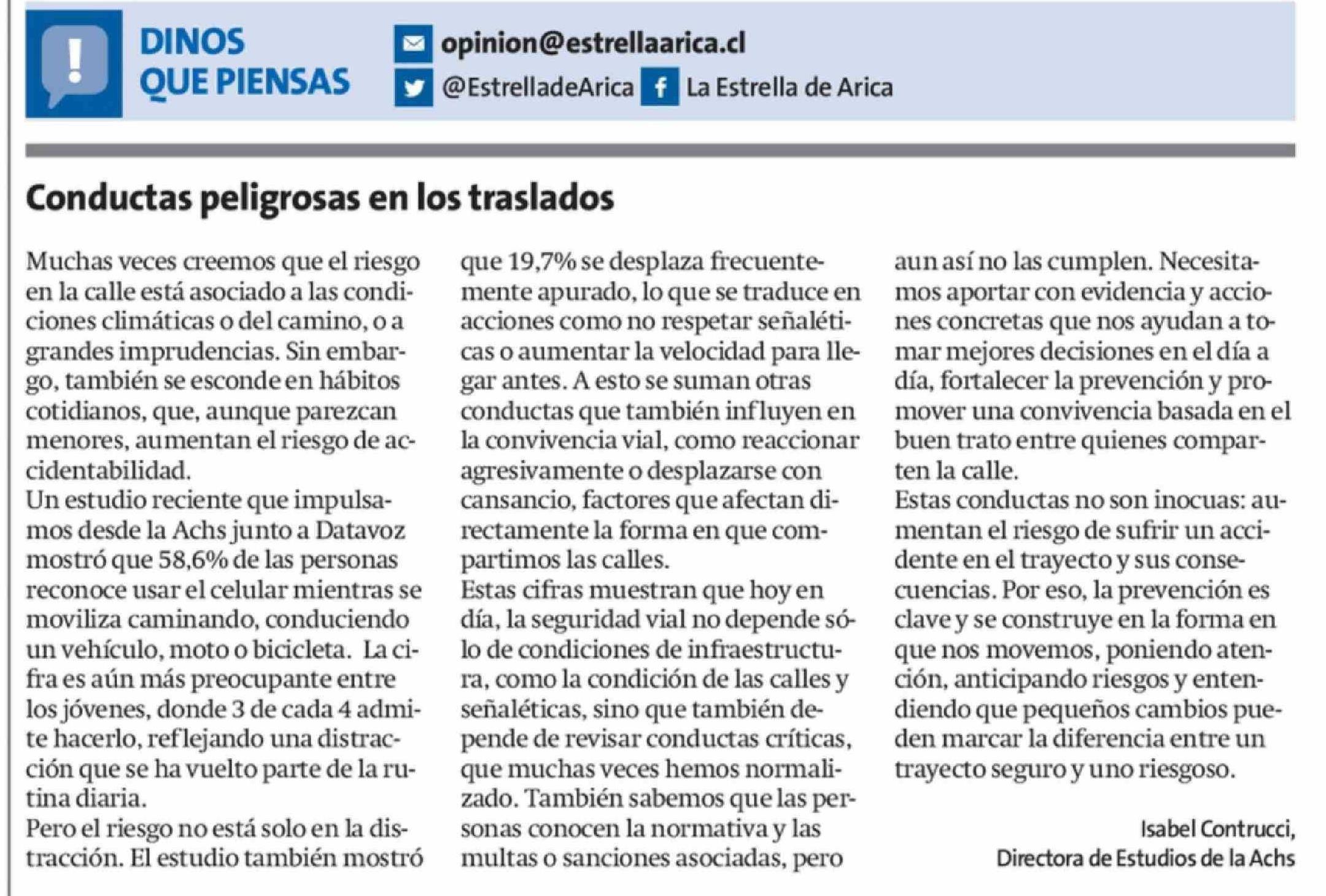 Título: Columnas de Opinión: Conductas peligrosas en los traslados