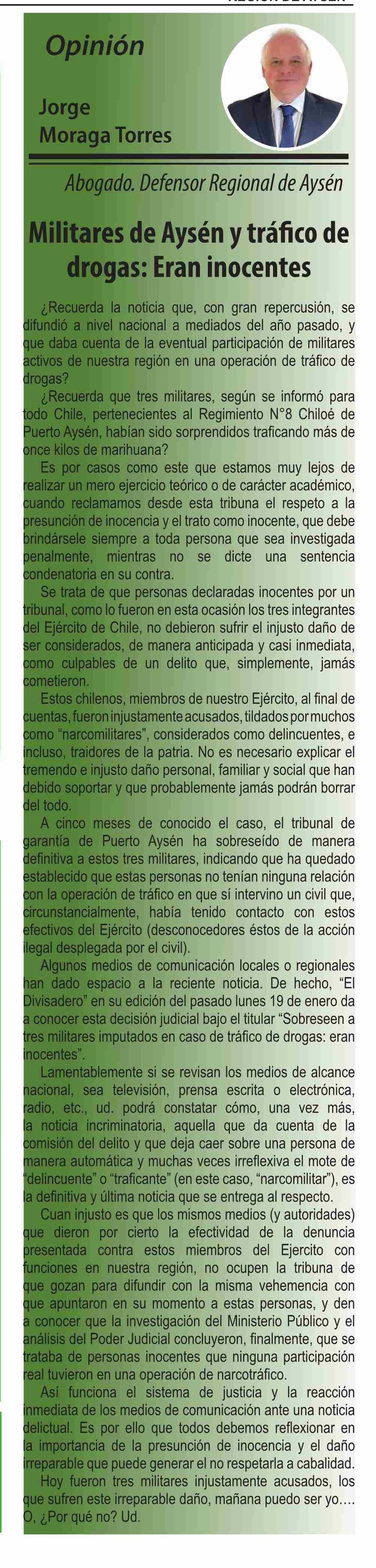 Columnas de Opinión: Militares de Aysén y tráfico de drogas: Eran inocentes