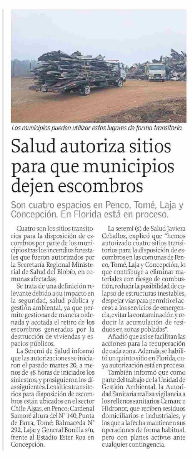 Salud autoriza sitios para que municipios dejen escombros