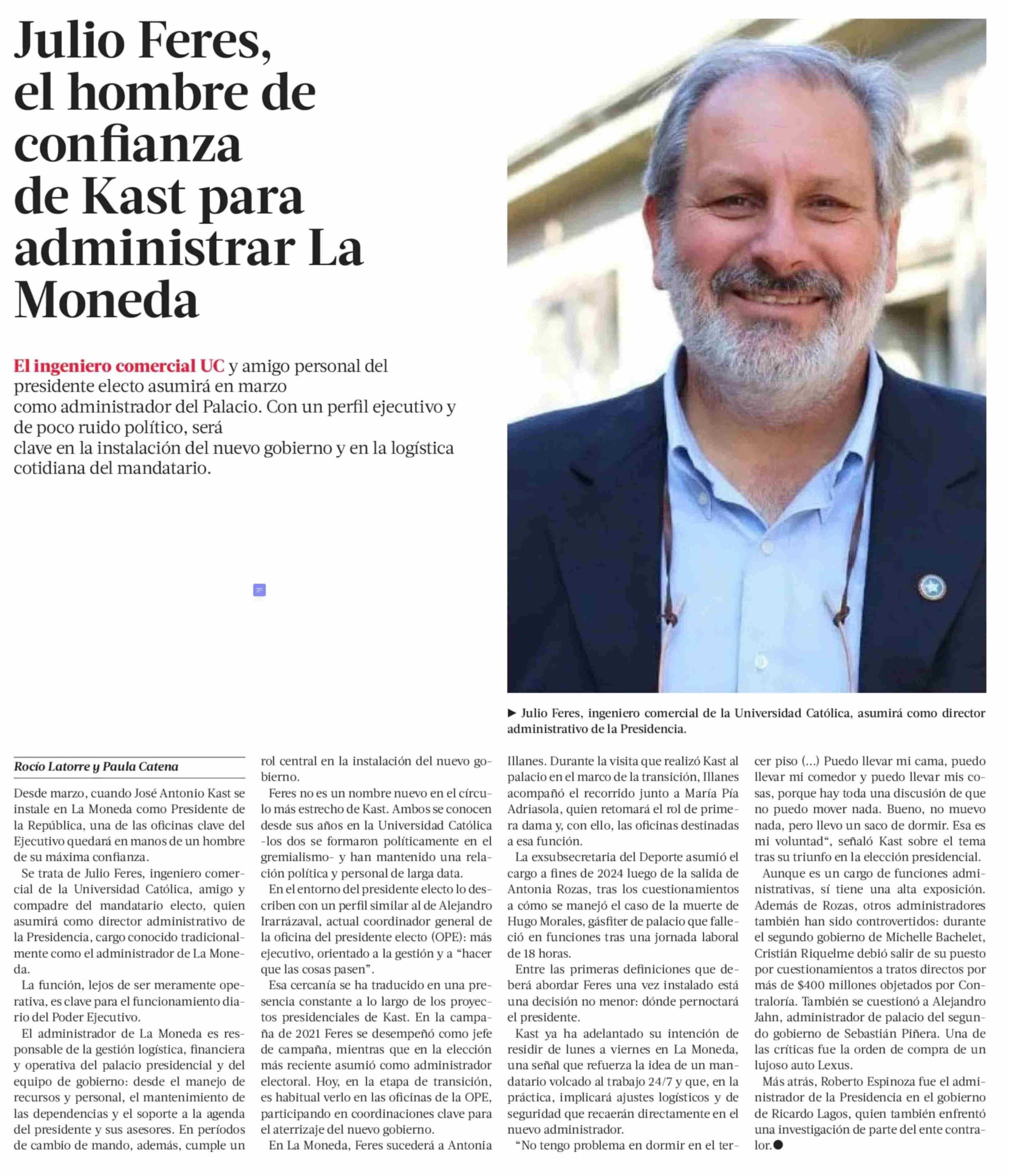 Julio Feres, el hombre de confianza de Kast para administrar La Moneda