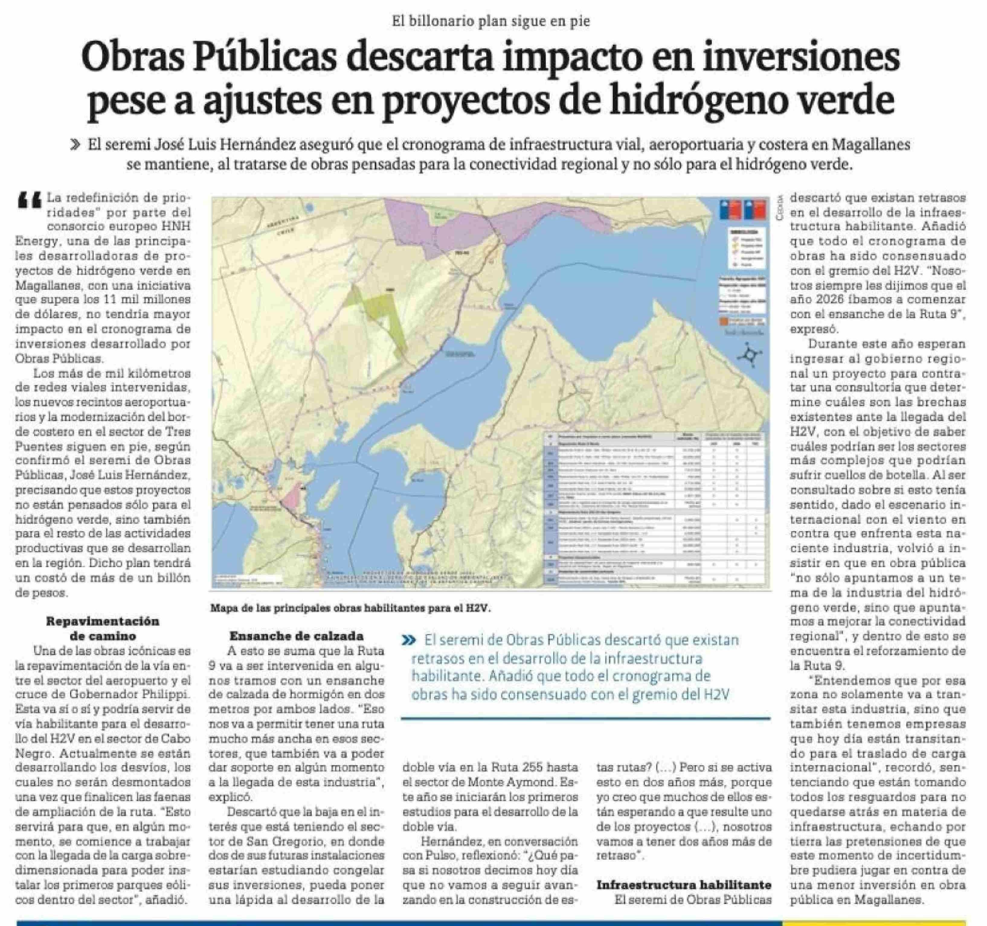 Obras Públicas descarta impacto en inversiones pese a ajustes en proyectos de hidrógeno verde