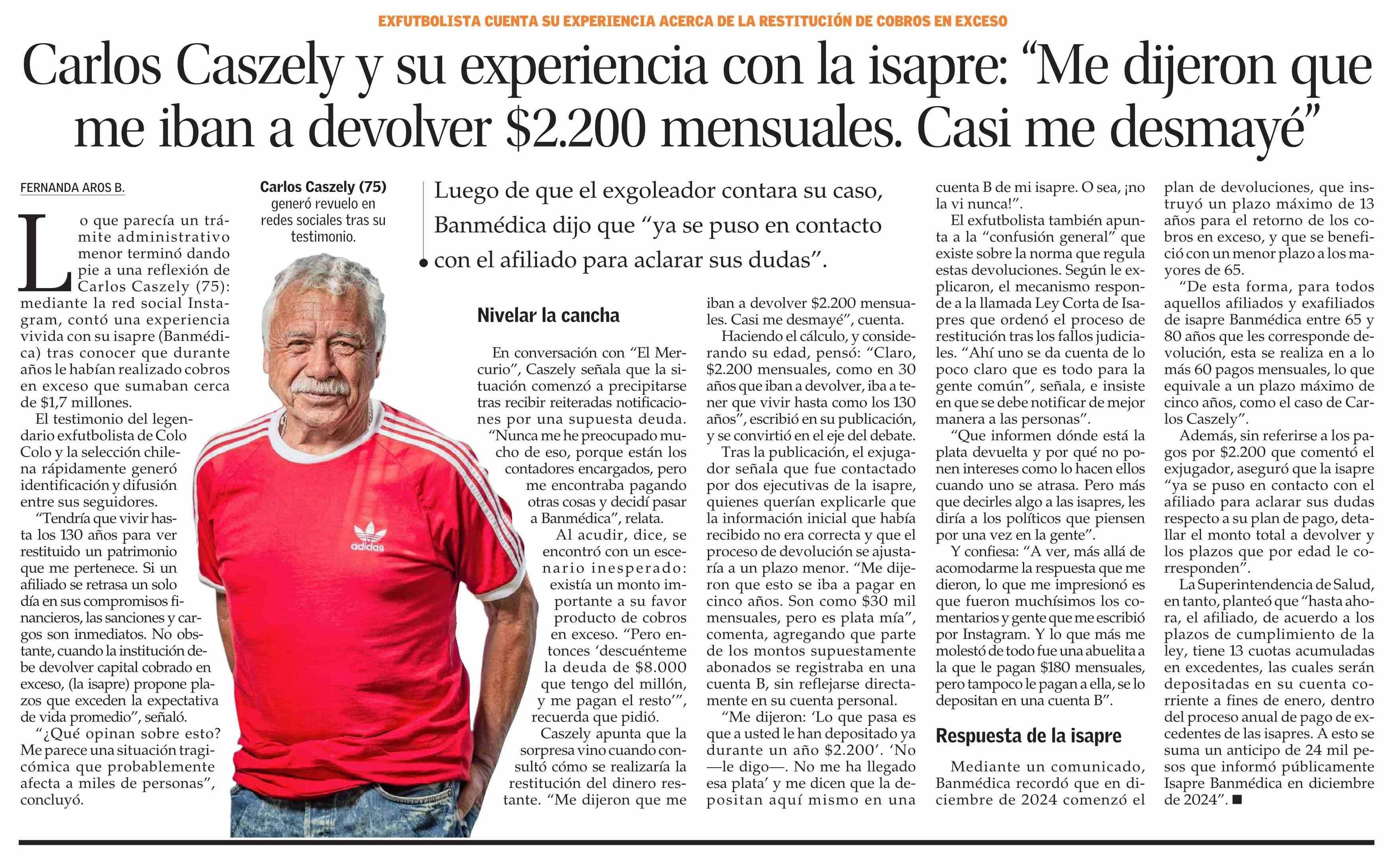 Carlos Caszely y su experiencia con la isapre: “Me dijeron que me iban a devolver $2.200 mensuales. Casi me desmayé”