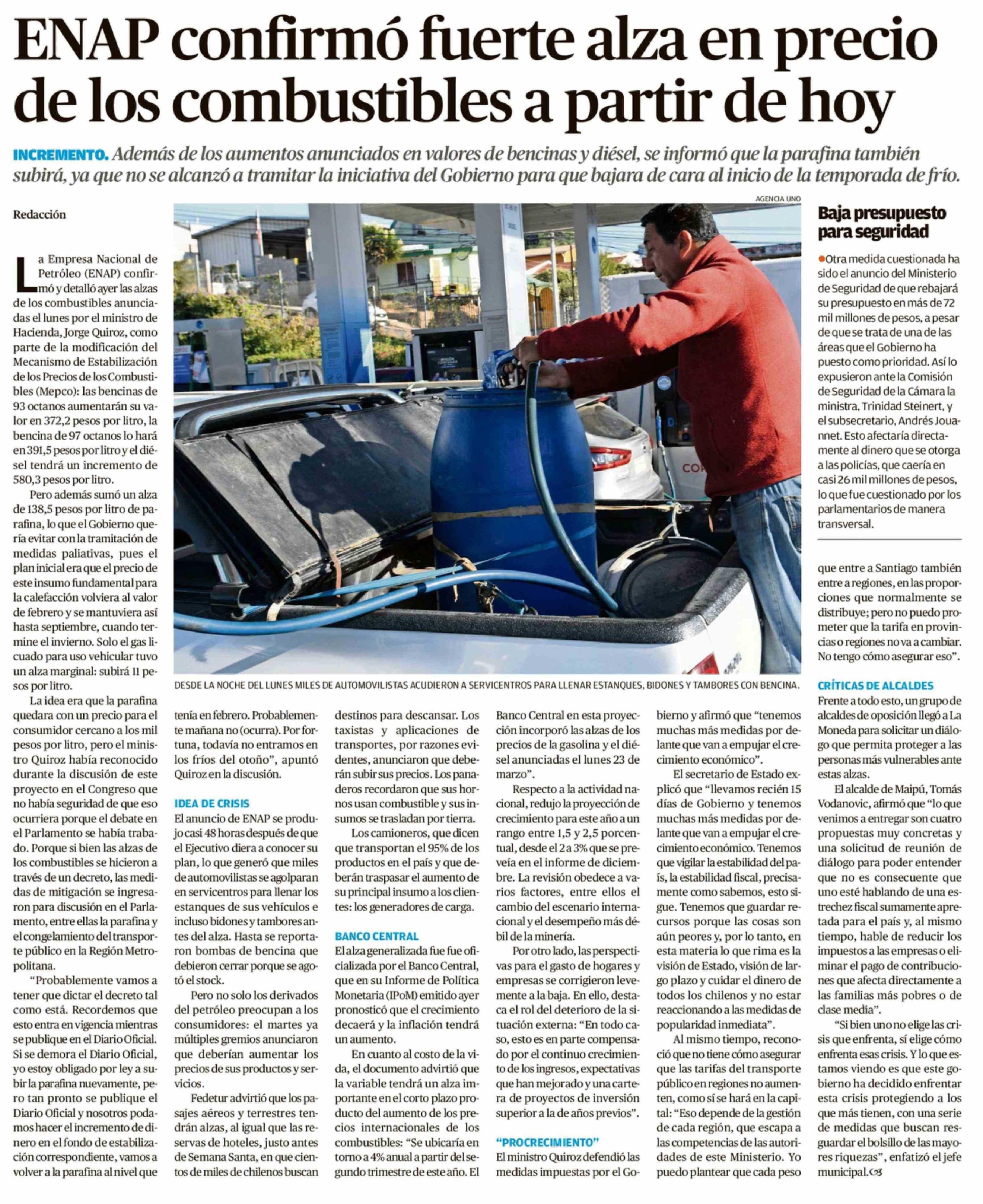 ENAP confirmó fuerte alza en precio de los combustibles a partir de hoy