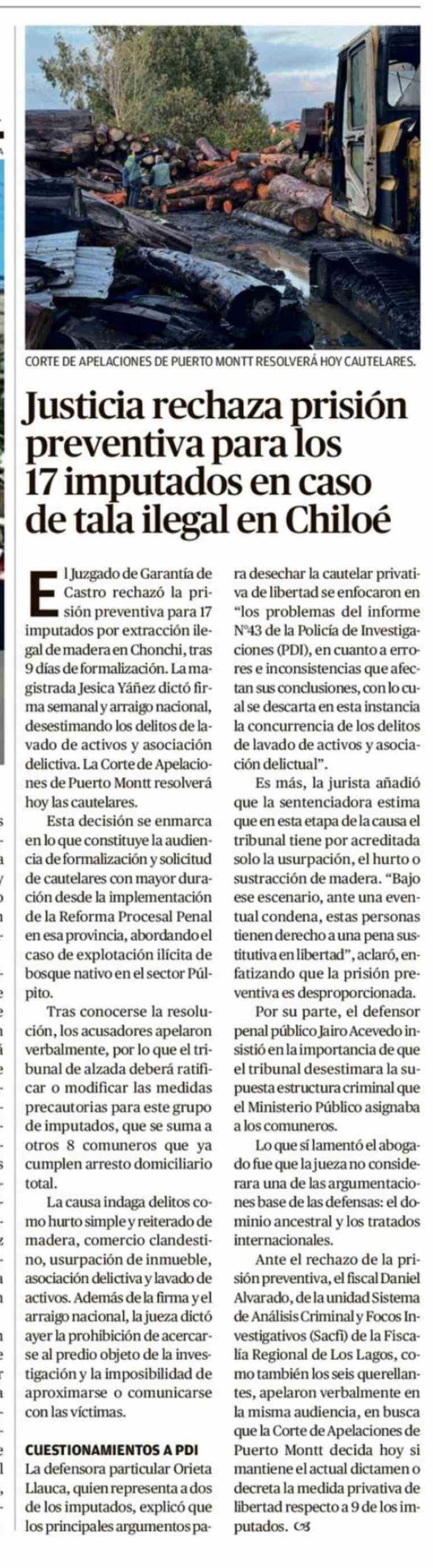 Justicia rechaza prisión preventiva para los 17 imputados en caso de tala ilegal en Chiloé