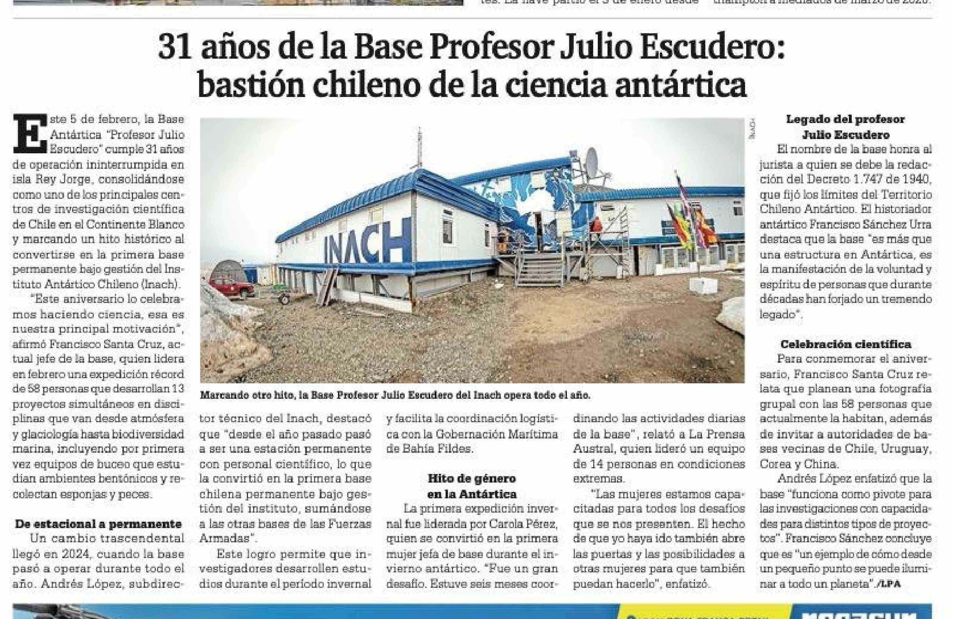 31 Años de la Base Profesor Julio Escudero: bastión chileno de la ciencia antártica