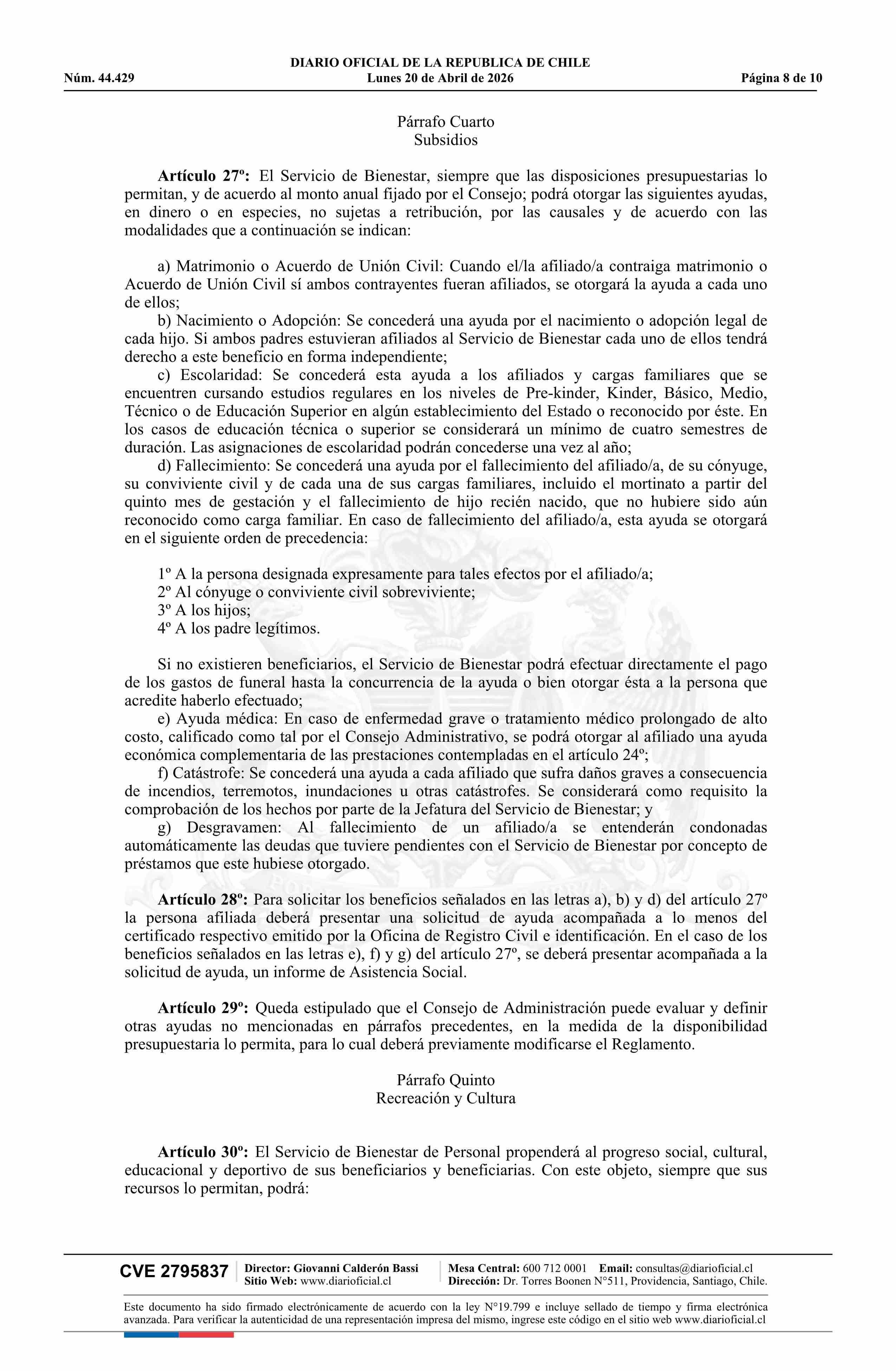 | Título: | Decreto exento número 61, de 2026.- Aprueba reglamento del Servicio de Bienestar de la Comisión del Sistema Nacional de Certificación de Competencias Laborales |