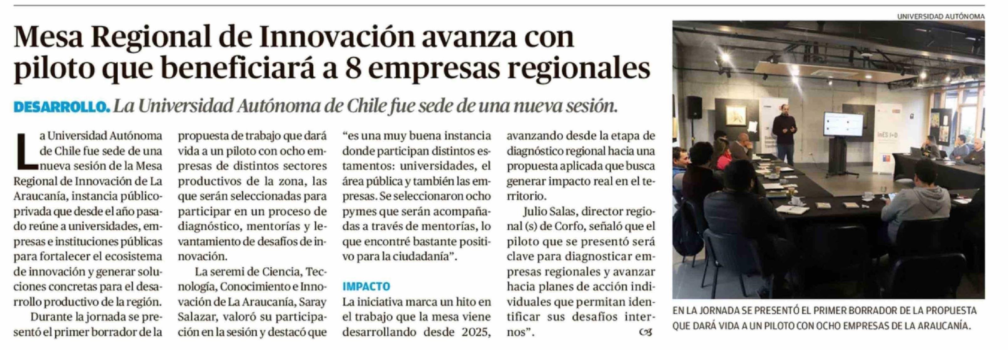 Mesa Regional de Innovación avanza con piloto que beneficiará a 8 empresas regionales