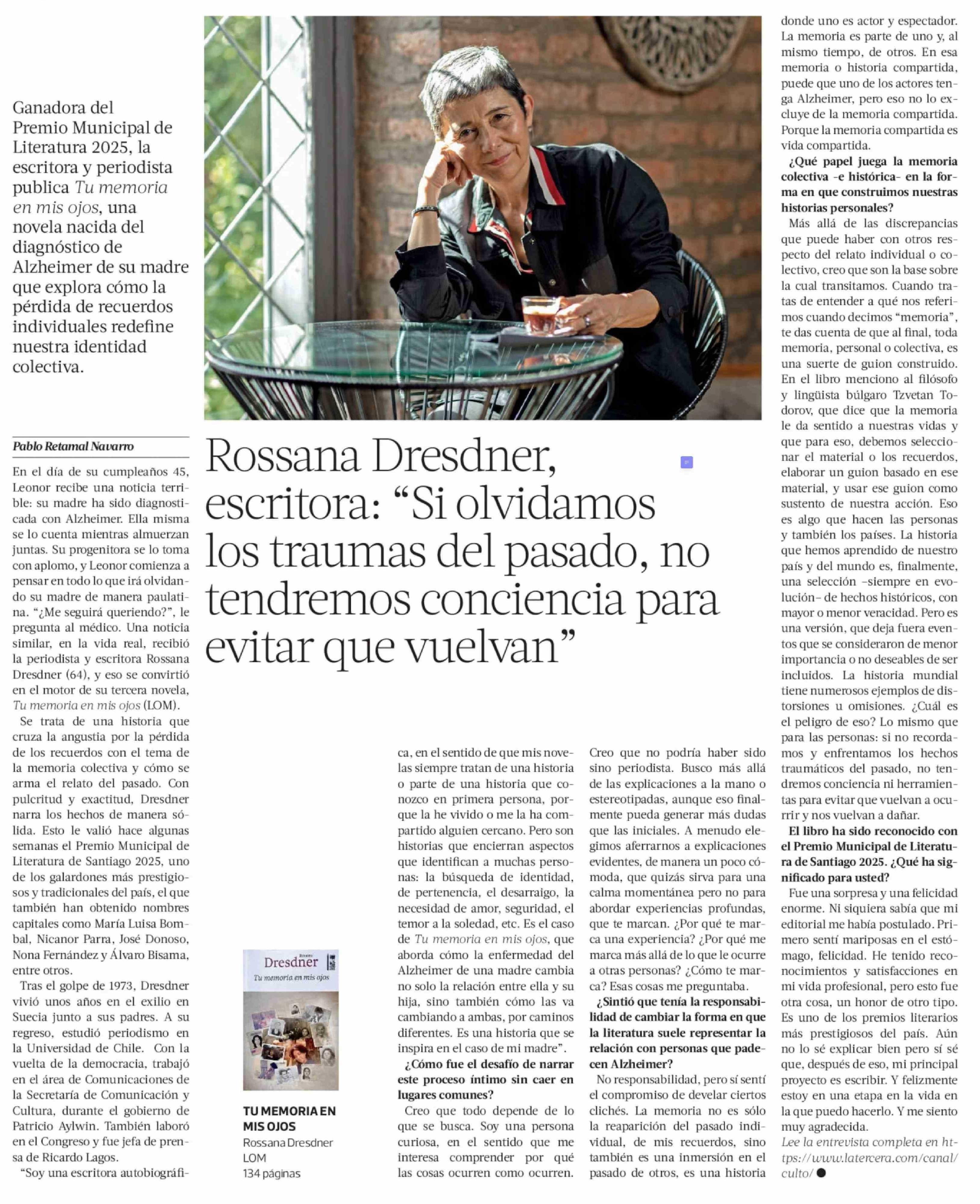Rossana Dresdner, escritora: "Si olvidamos los traumas del pasado, no tendremos conciencia para evitar que vuelvan"