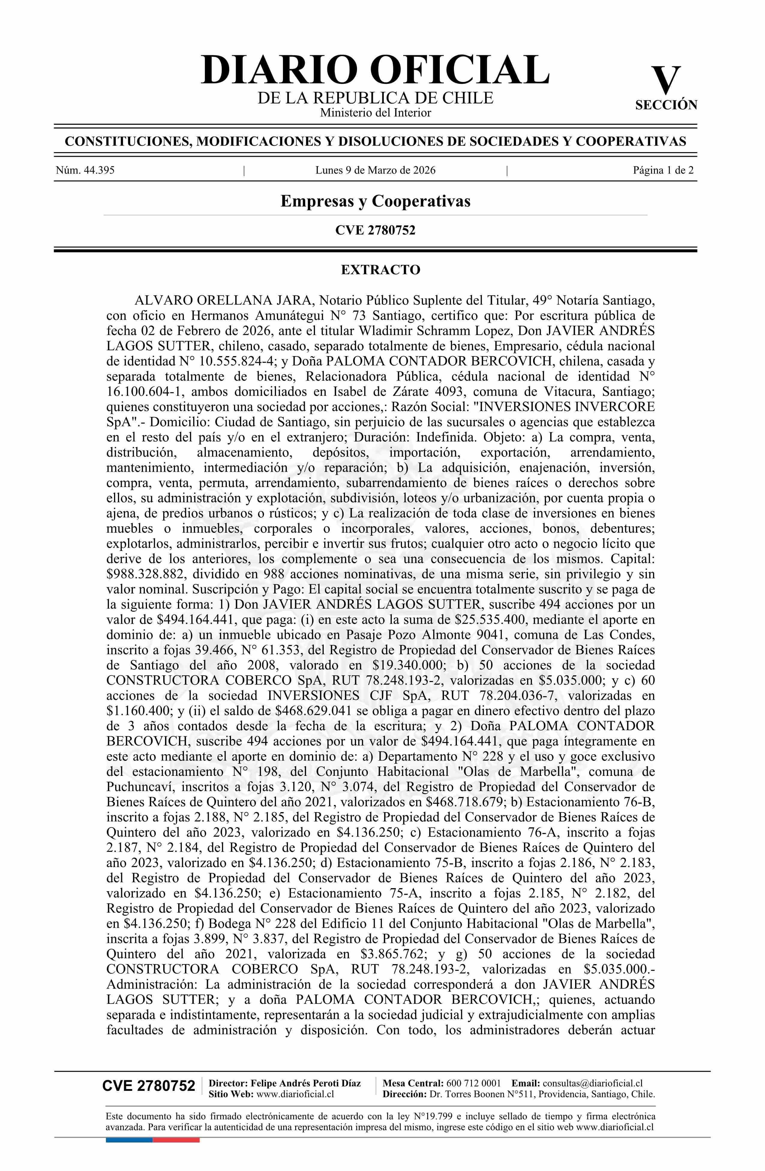 Diario Oficial Edición Electrónica (Diario Oficial de Chile - 5 Empresas Y Cooper)