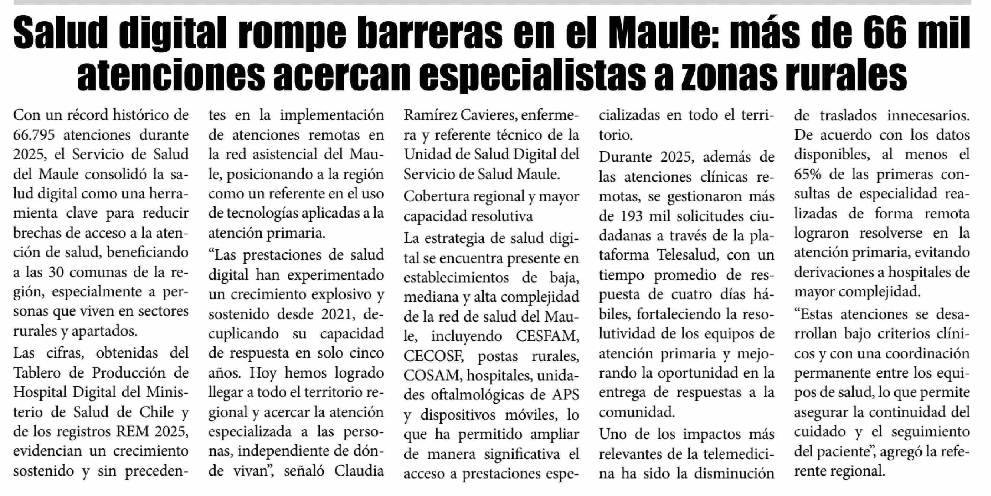 Salud digital rompe barreras en el Maule: más de 66 mil atenciones acercan especialistas a zonas rurales