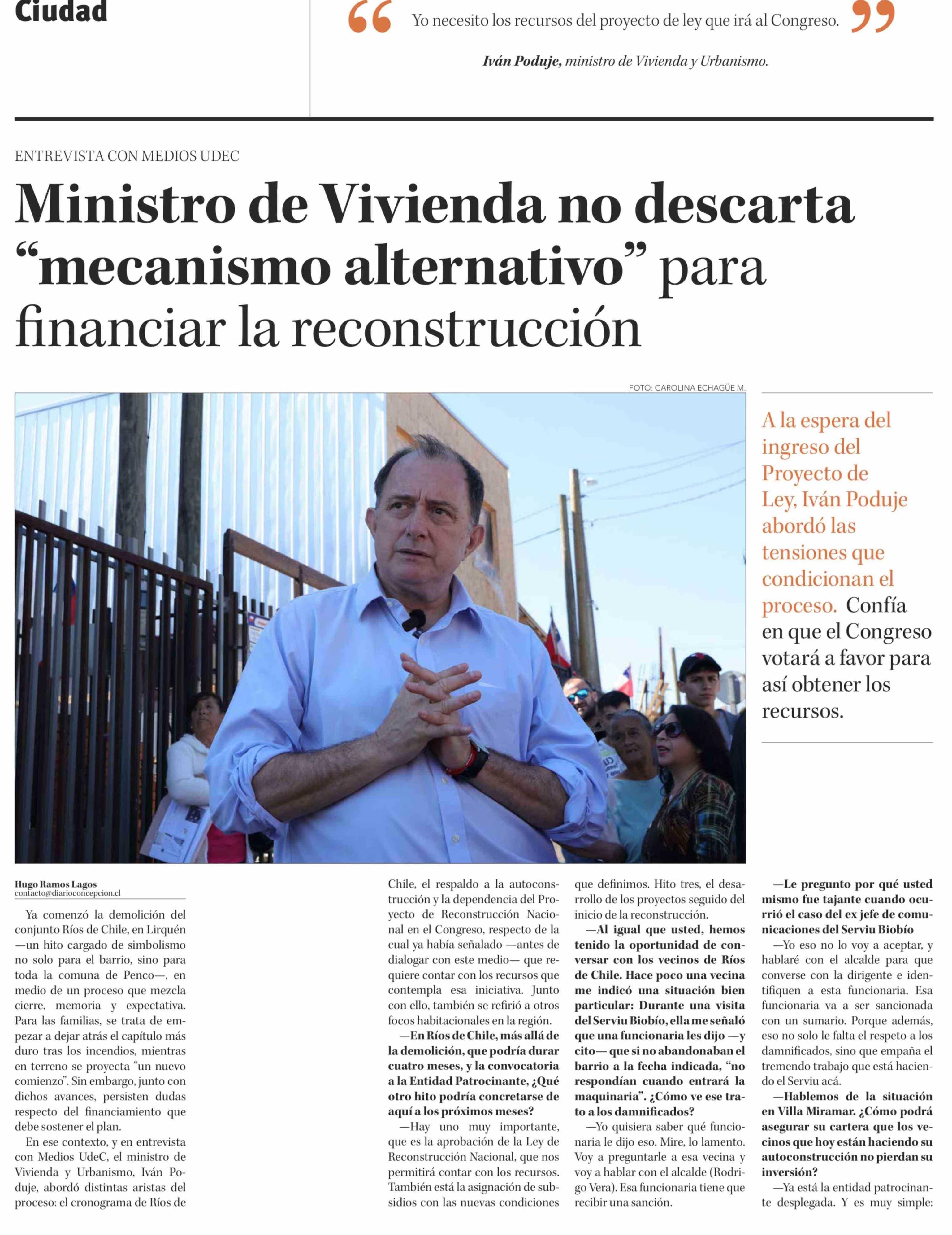 Ministro de Vivienda no descarta mecanismo alternativo" para financiar la reconstrucción