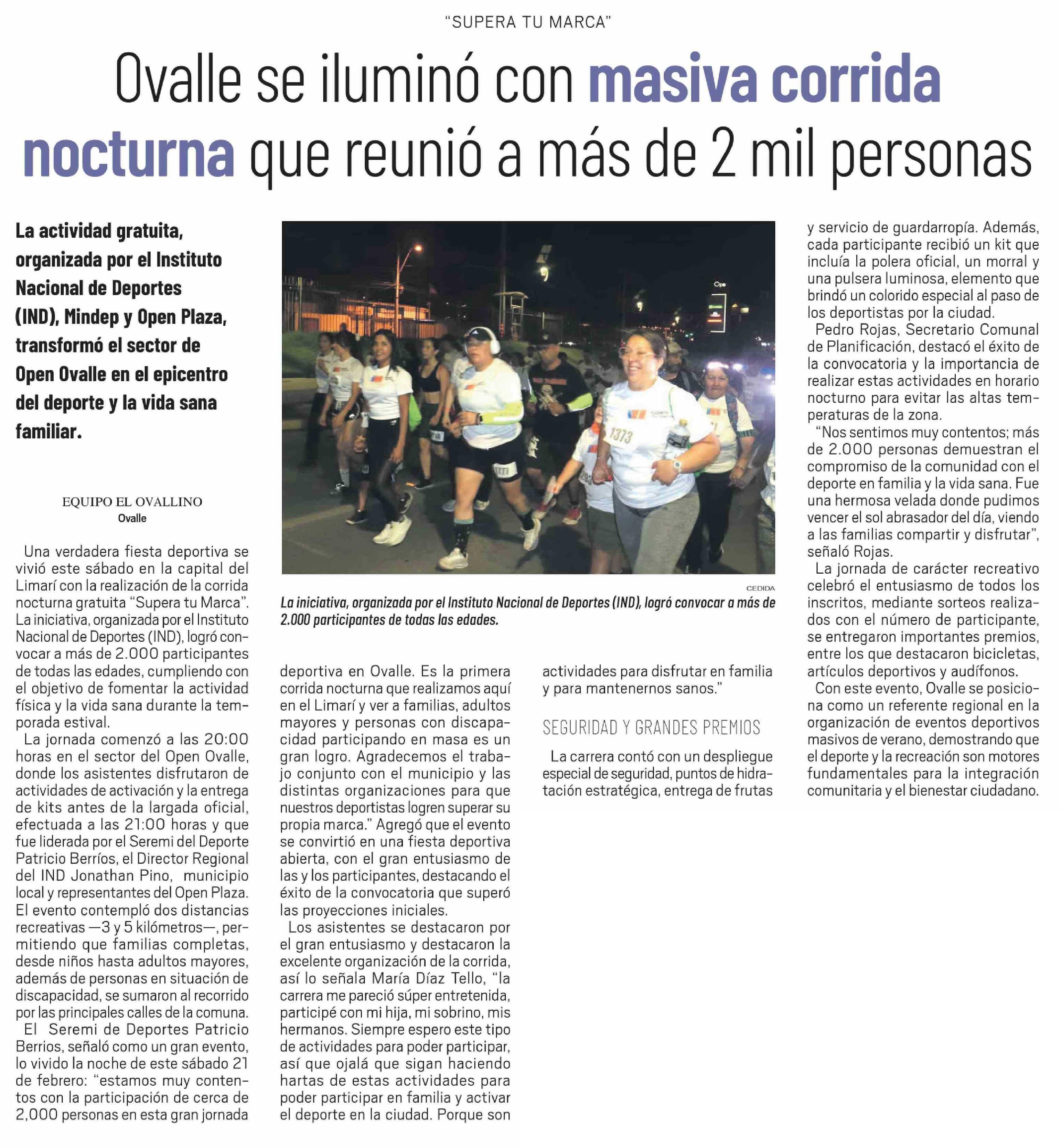 Ovalle se iluminó con masiva corrida nocturna que reunió a más de 2 mil personas