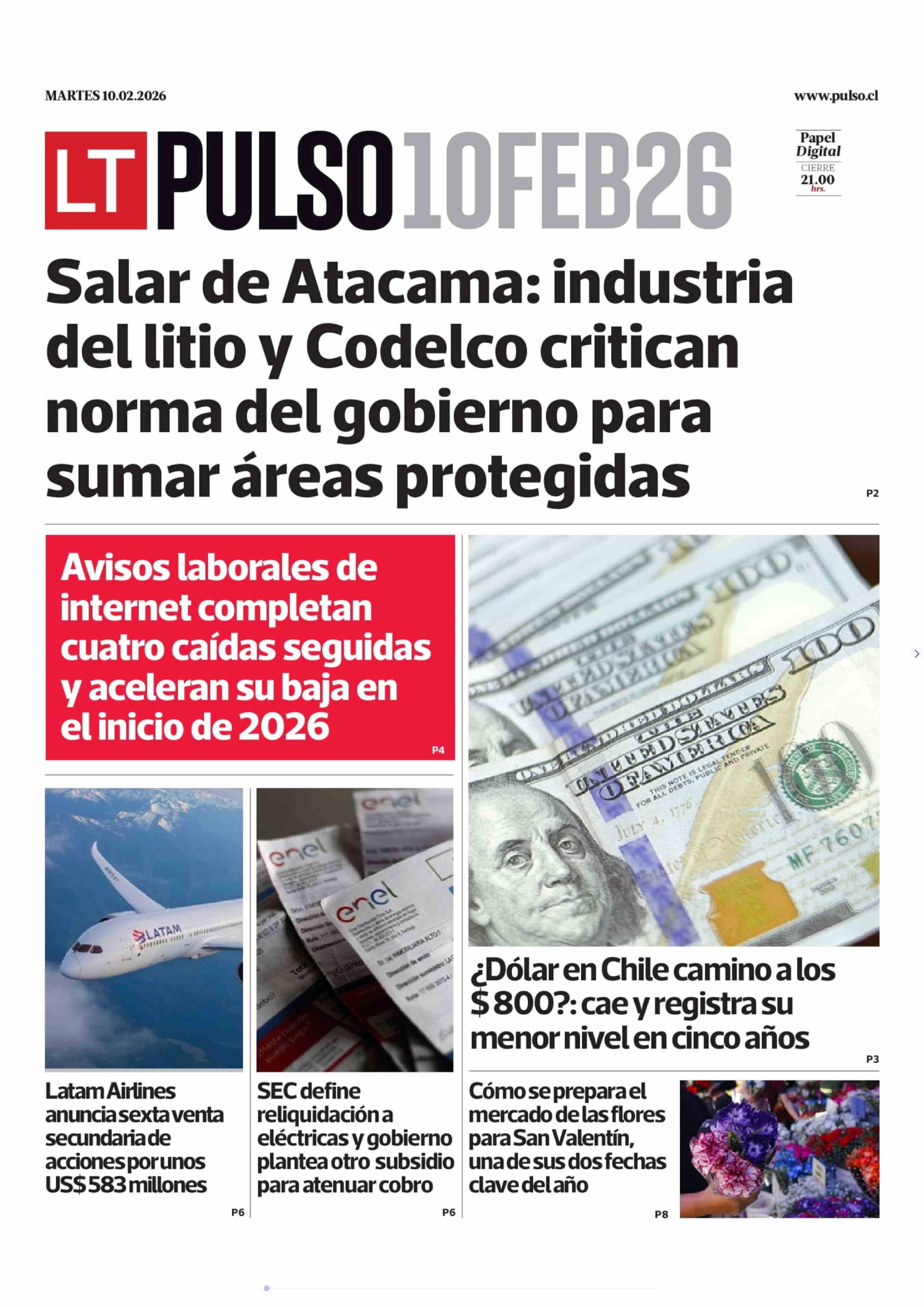 PORTADA LA TERCERA (PULSO) CHILE