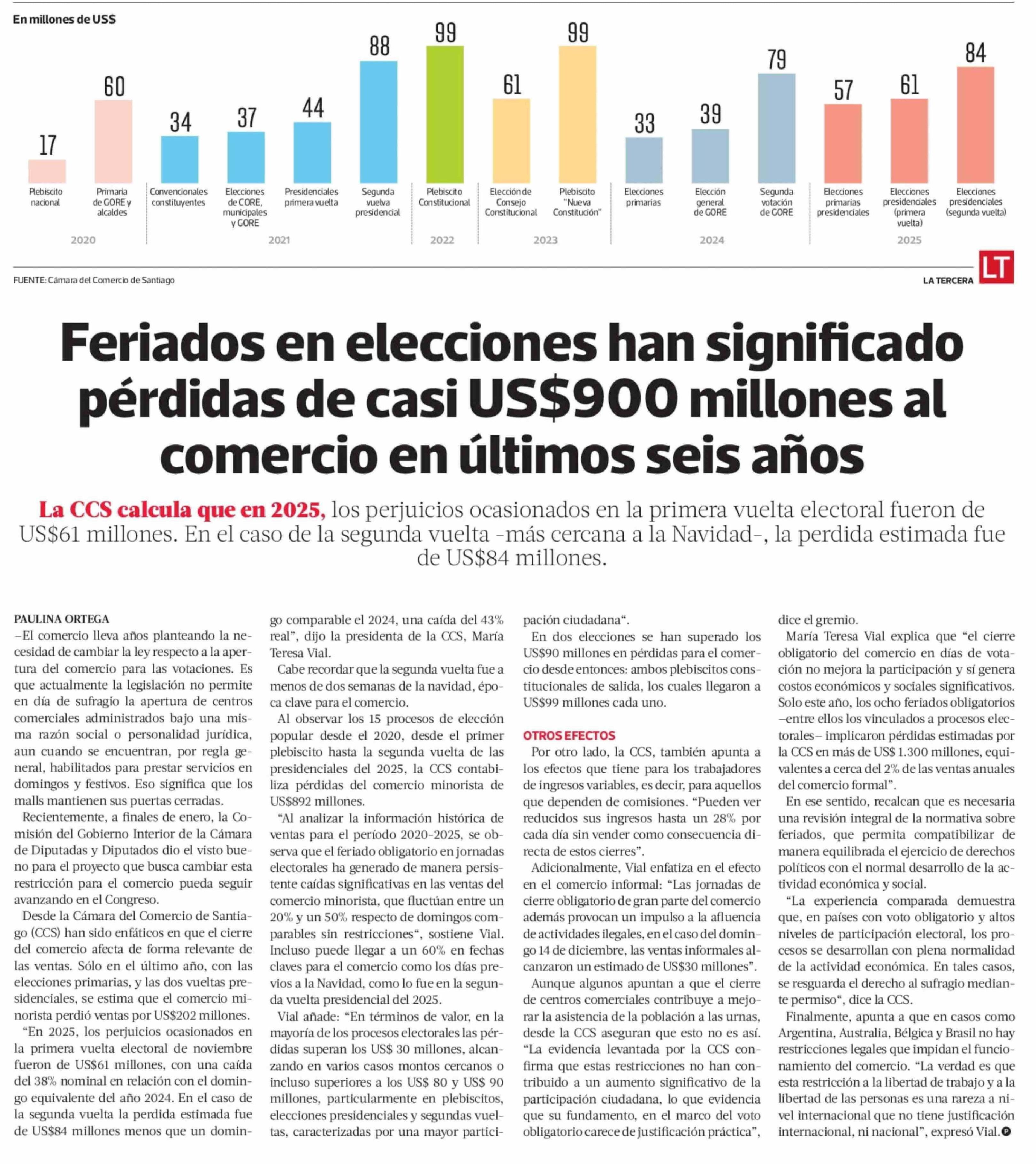 Feriados en elecciones han significado pérdidas de casi US$900 millones al comercio en últimos seis años