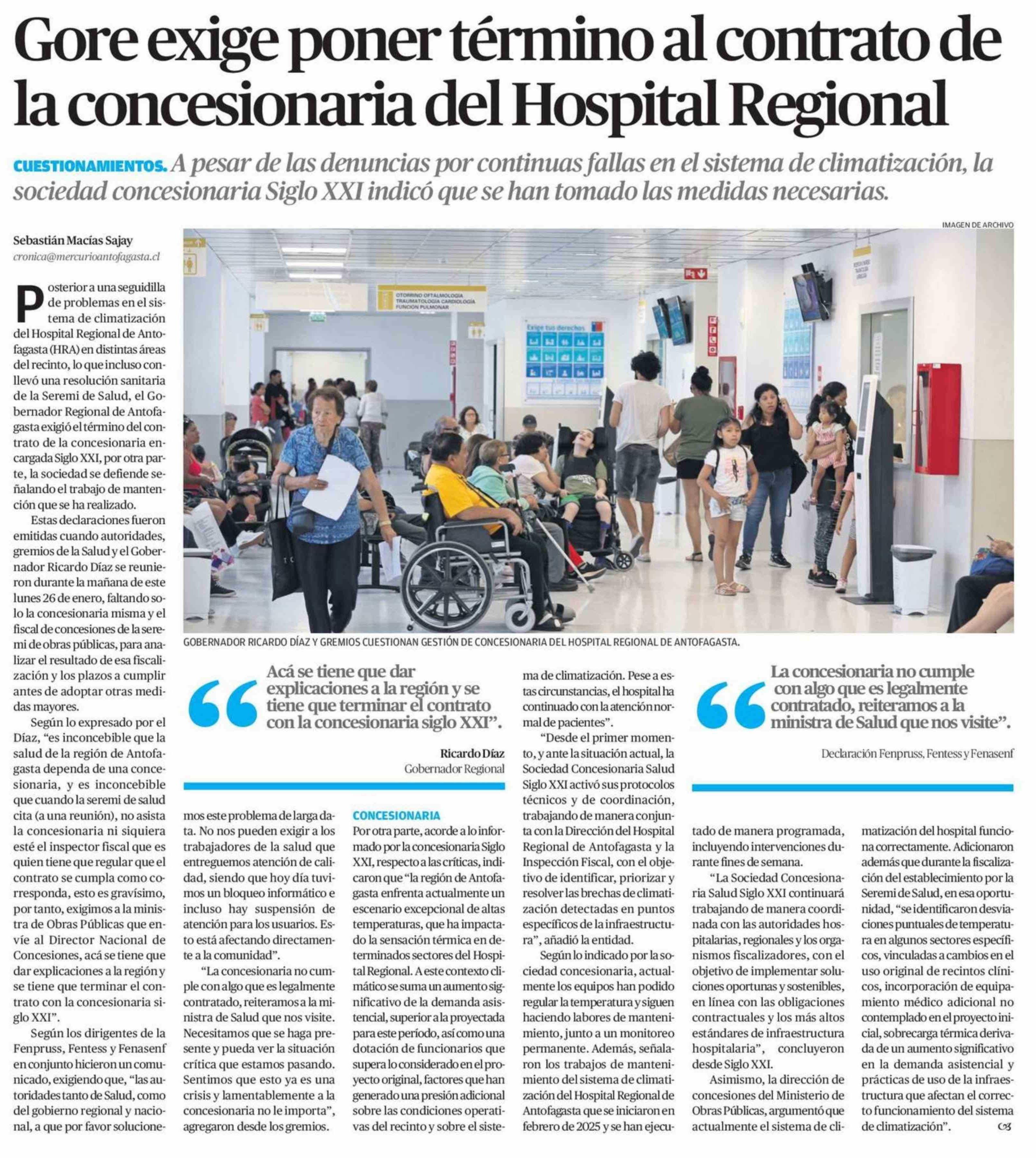 Gore exige poner término al contrato de la concesionaria del Hospital Regional