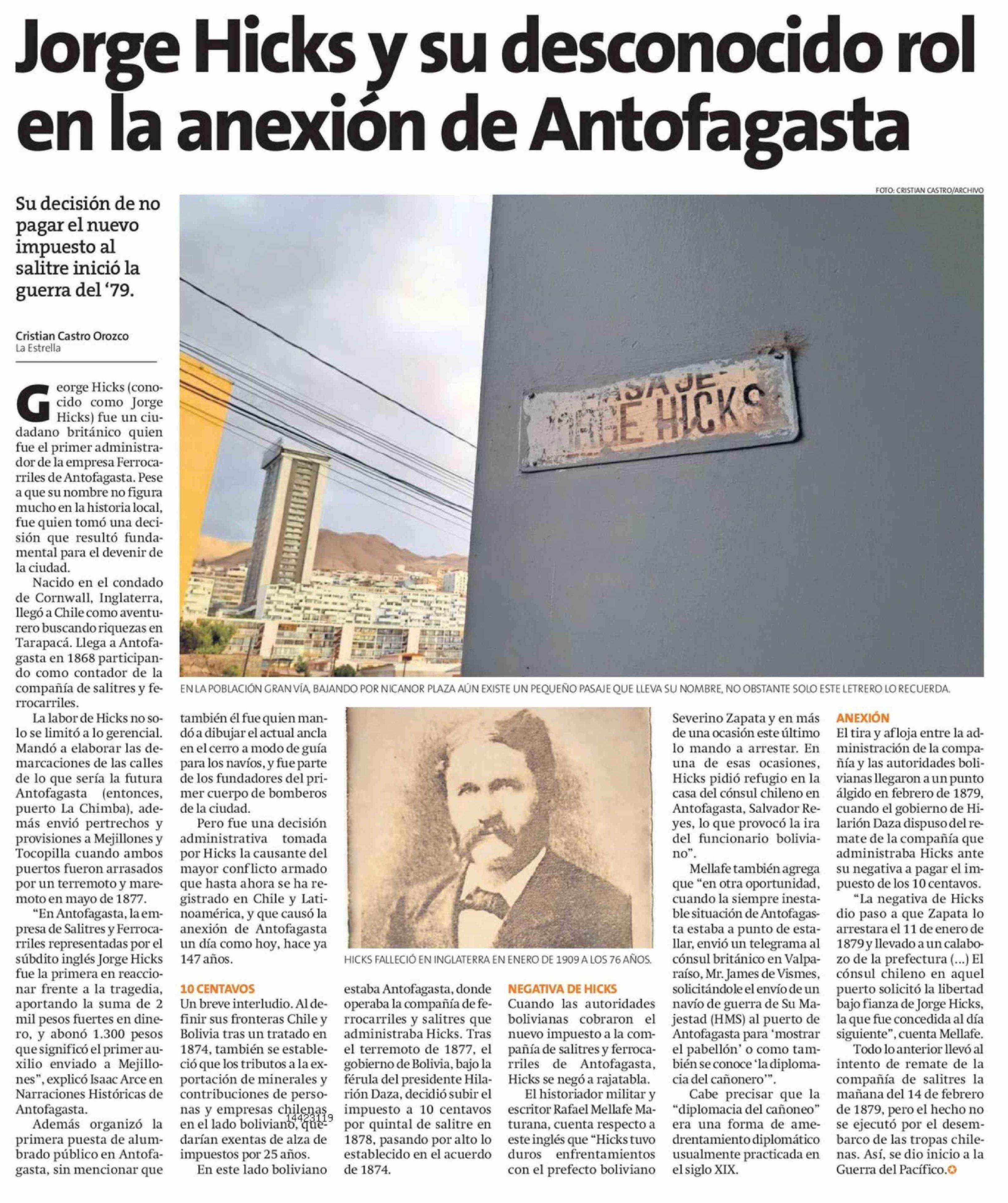 Jorge Hicks y su desconocido rol en la anexión de Antofagasta