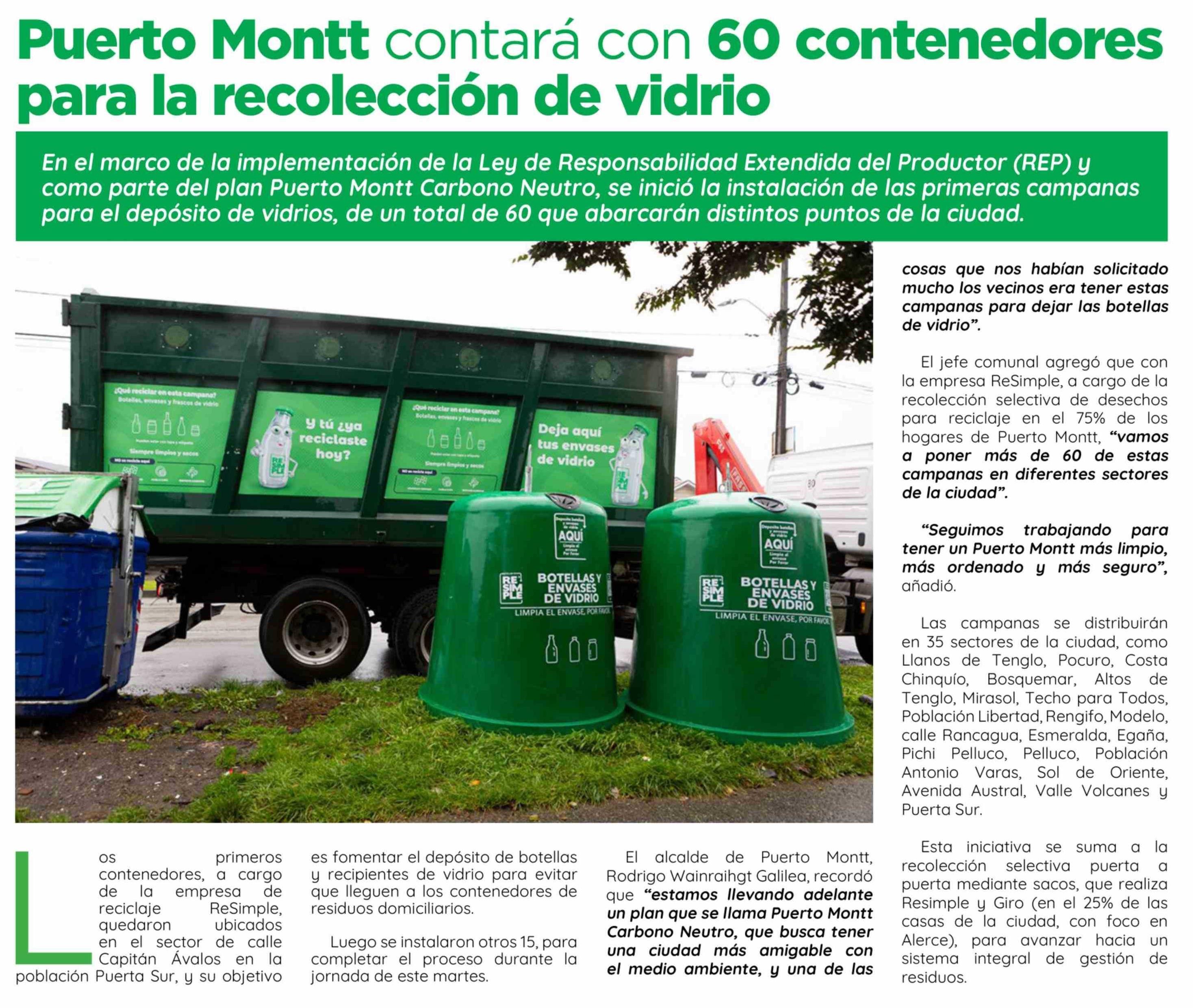 Puerto Montt contará con 60 contenedores para la recolección de vidrio