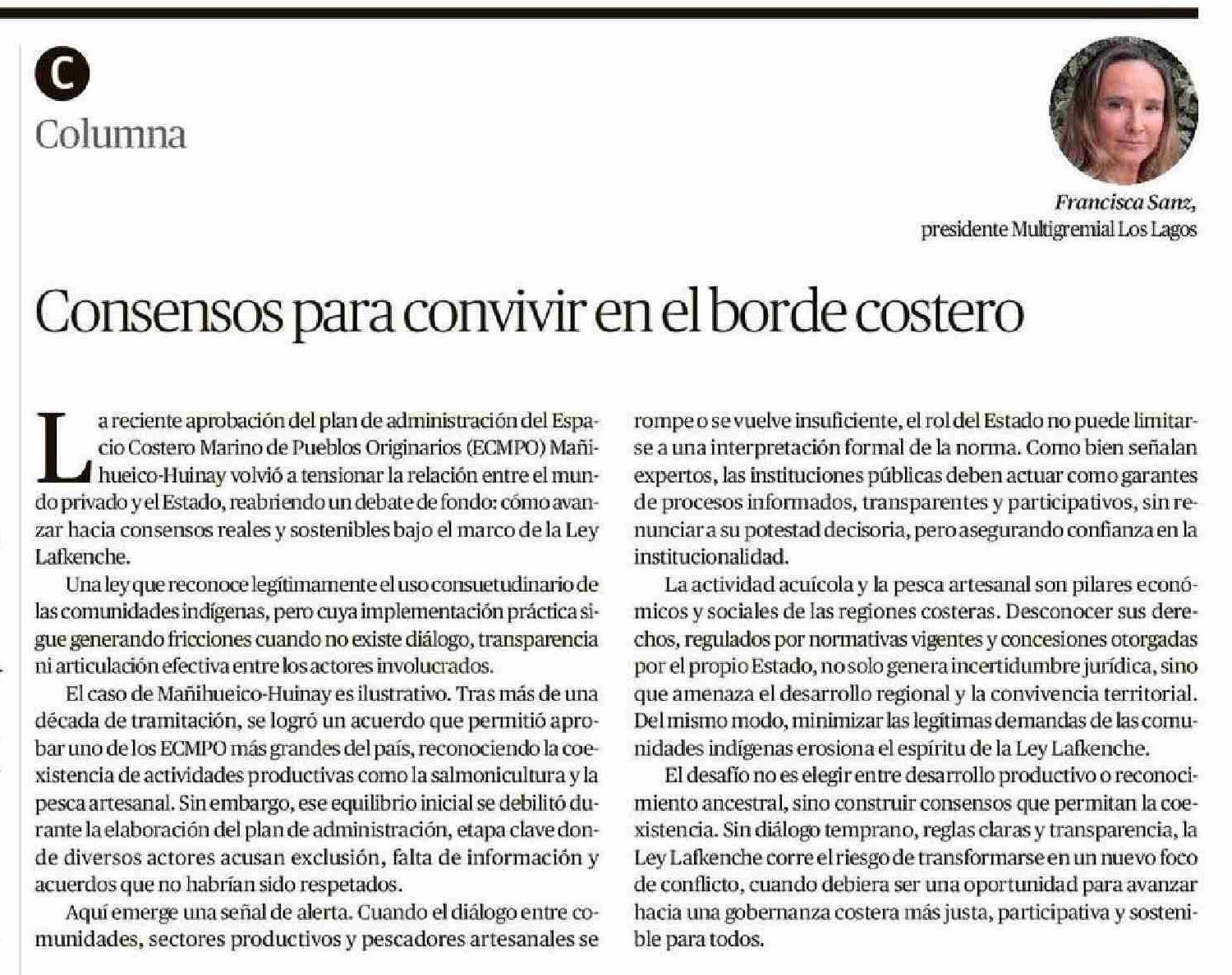 Columnas de Opinión: Consensos para convivir en el borde costero