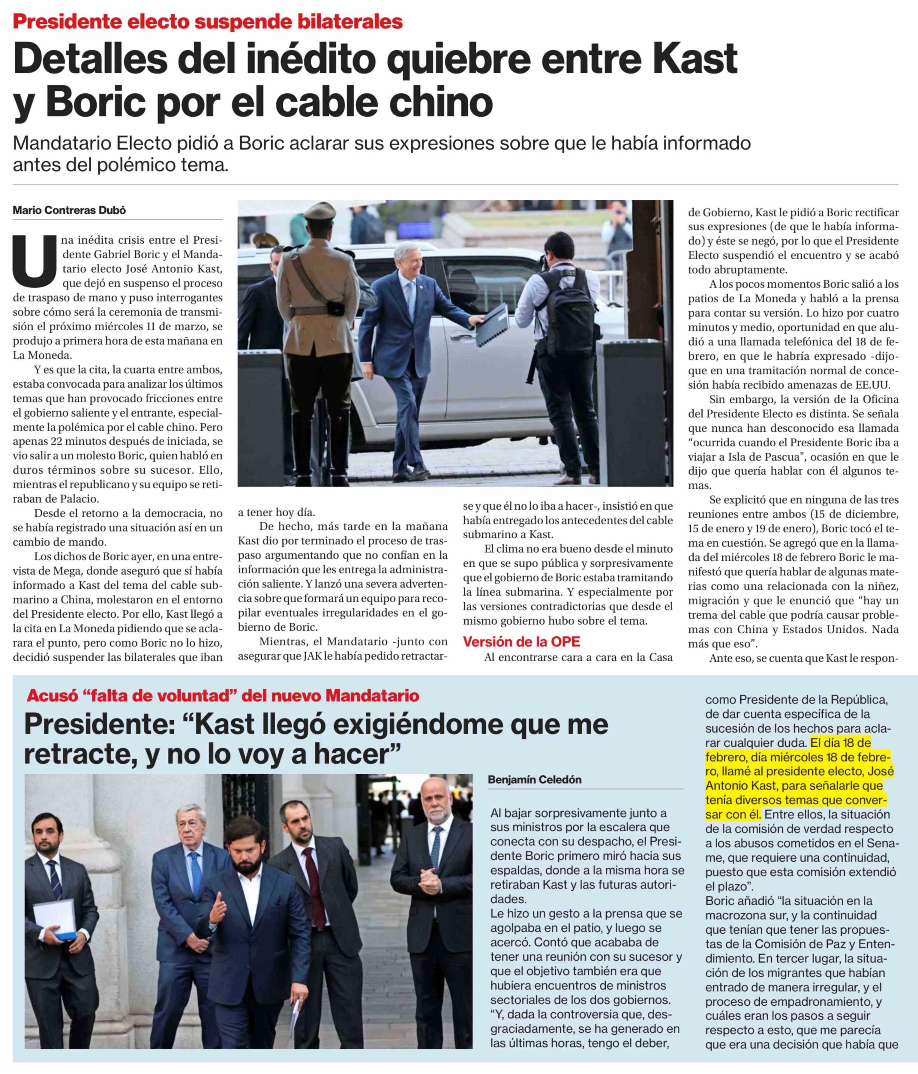 Detalles del inédito quiebre entre Kast y Boric por el cable chino