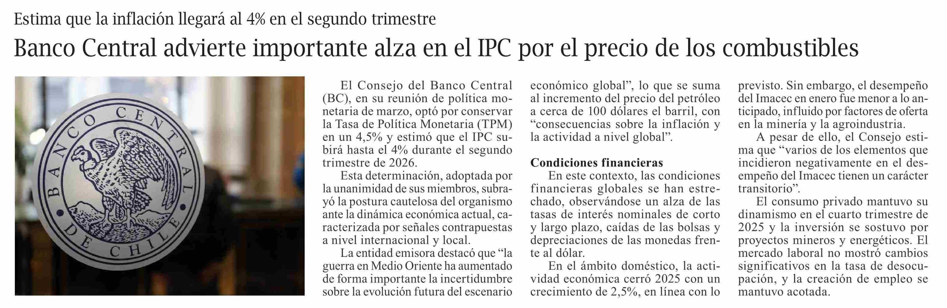 Banco Central advierte importante alza en el IPC por el precio de los combustibles