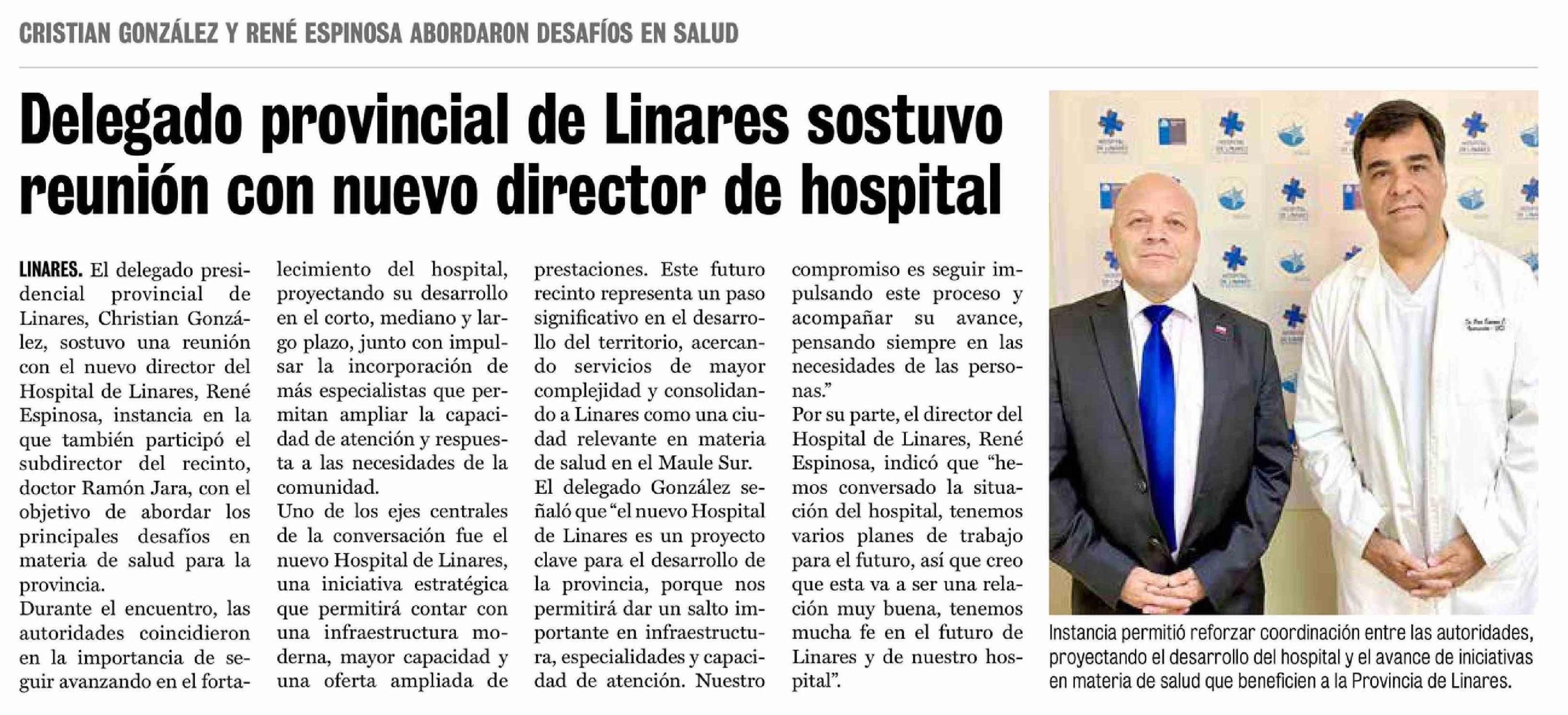 Delegado provincial de Linares sostuvo reunión con nuevo director de hospital