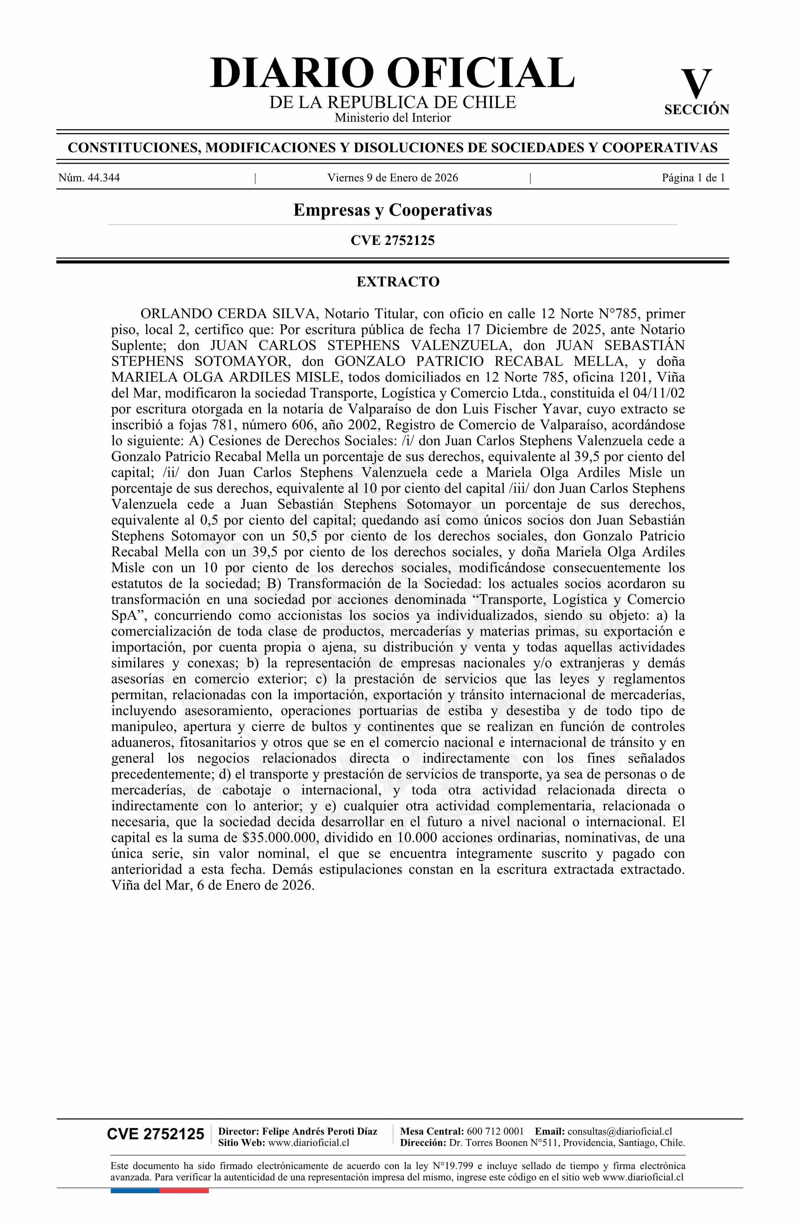 Diario Oficial Edición Electrónica (Diario Oficial de Chile - 5 Empresas Y Cooper)