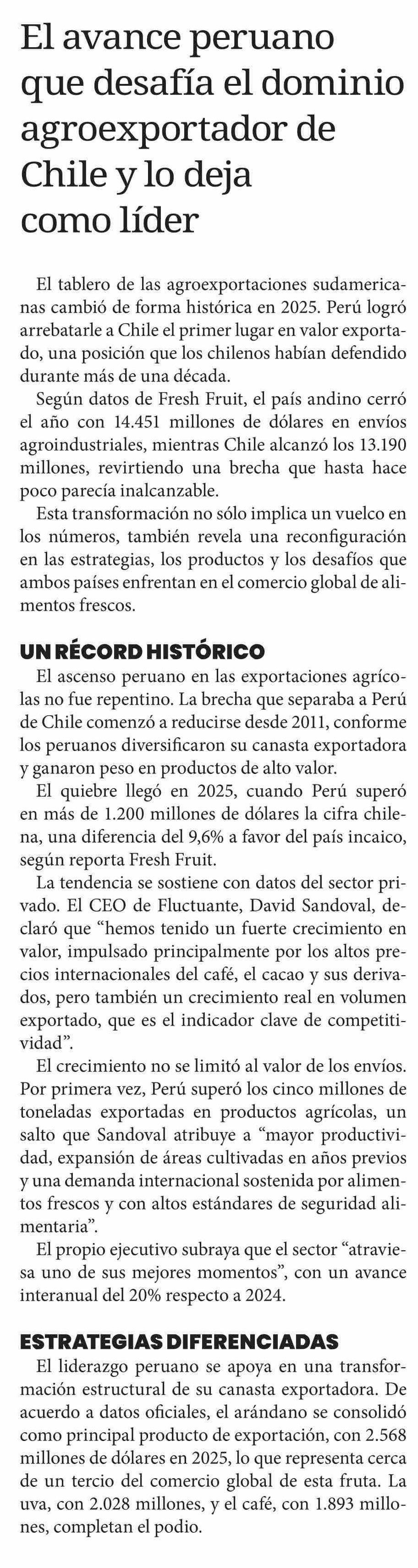 El avance peruano que desafía el dominio agroexportador de Chile y lo deja como líder