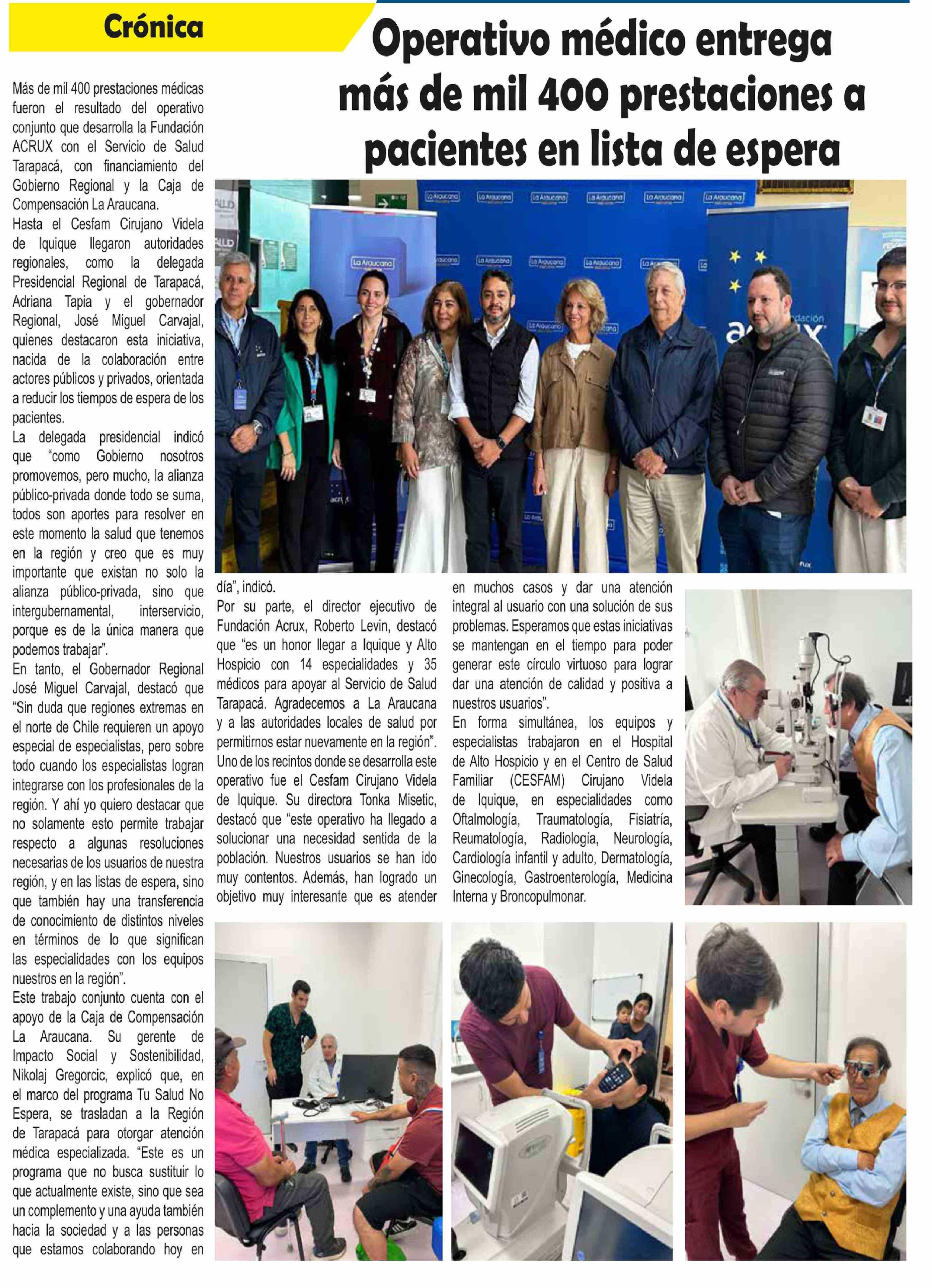 Título: Operativo médico entrega más de mil 400 prestaciones a pacientes en lista de espera