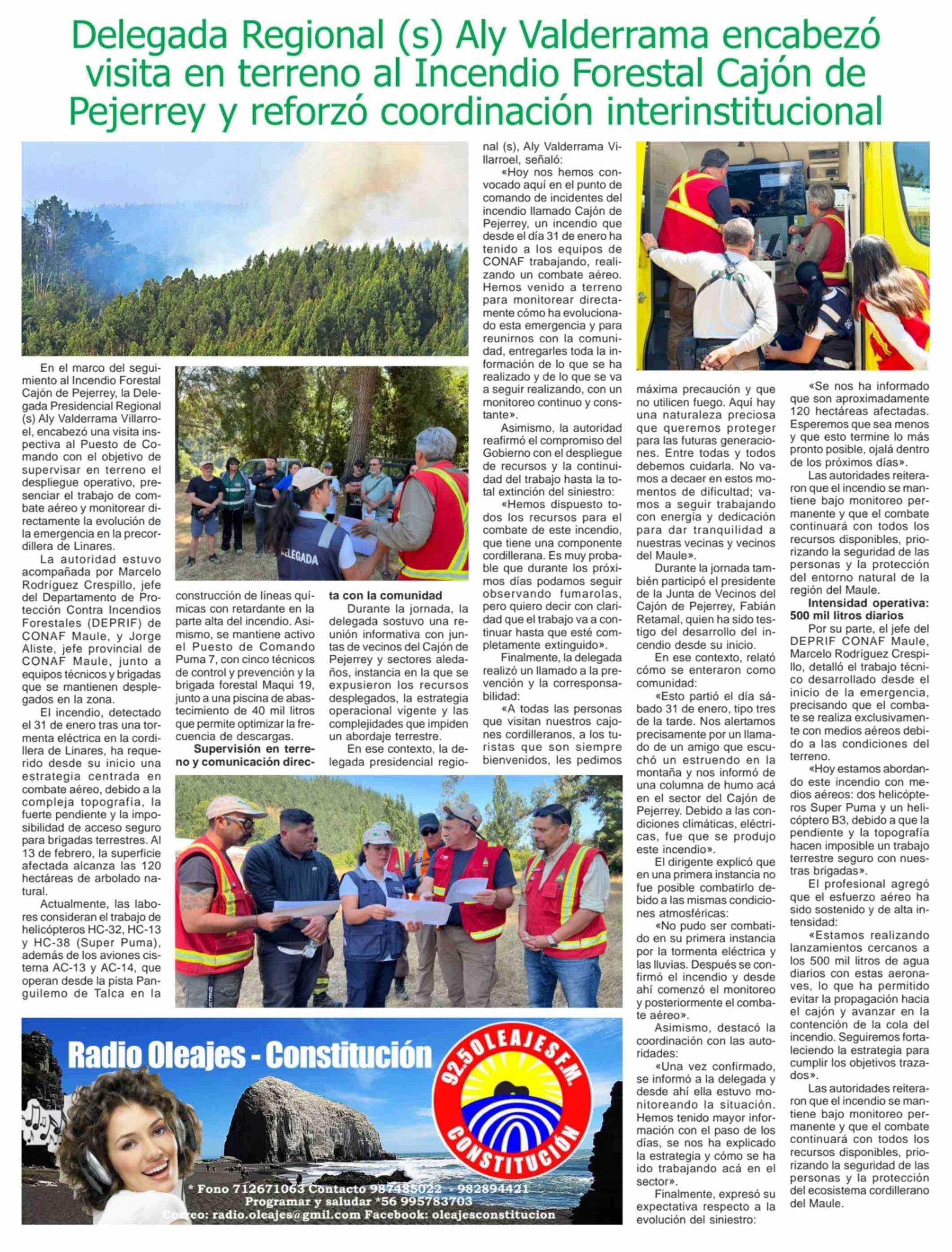 Delegada Regional (s) Aly Valderrama encabezó visita en terreno al Incendio Forestal Cajón de Pejerrey y reforzó coordinación interinstitucional