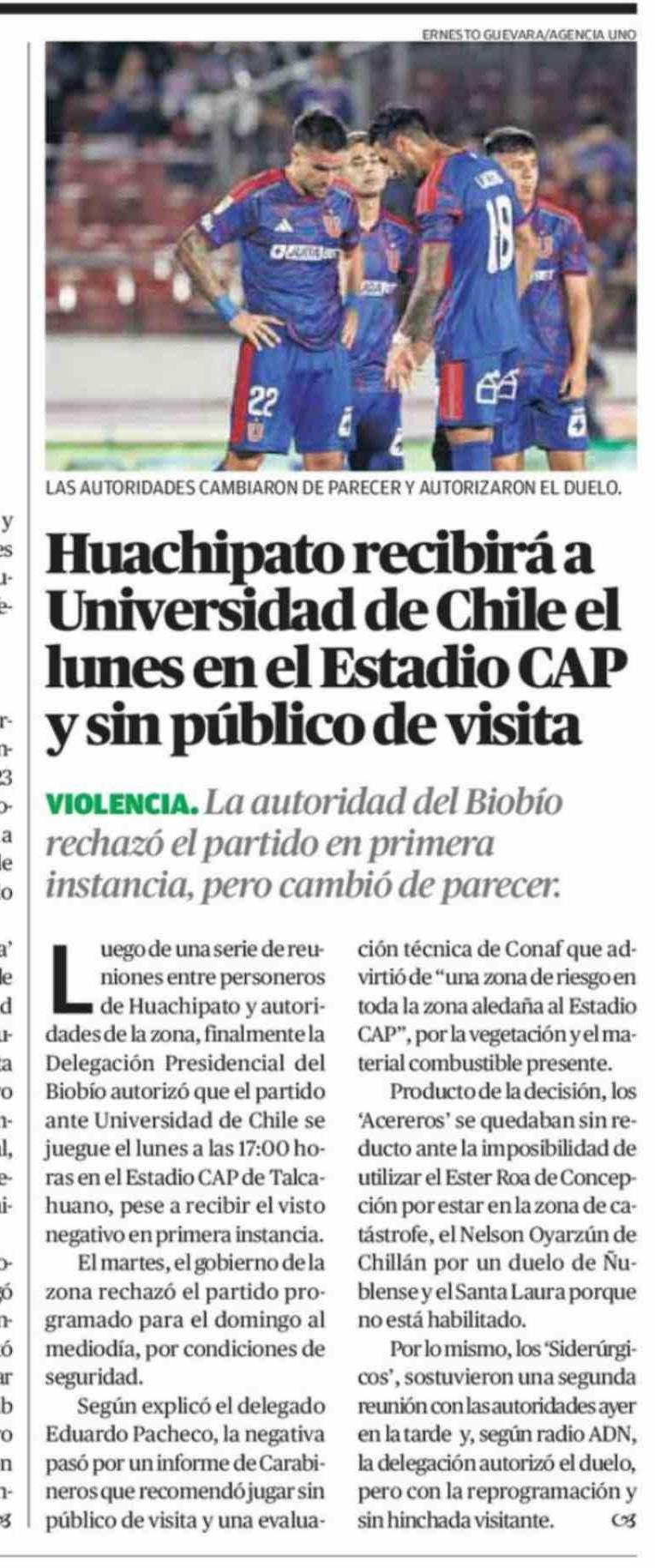 Huachipato recibirá a Universidad de Chile el lunes en el Estadio CAP y sin público de visita