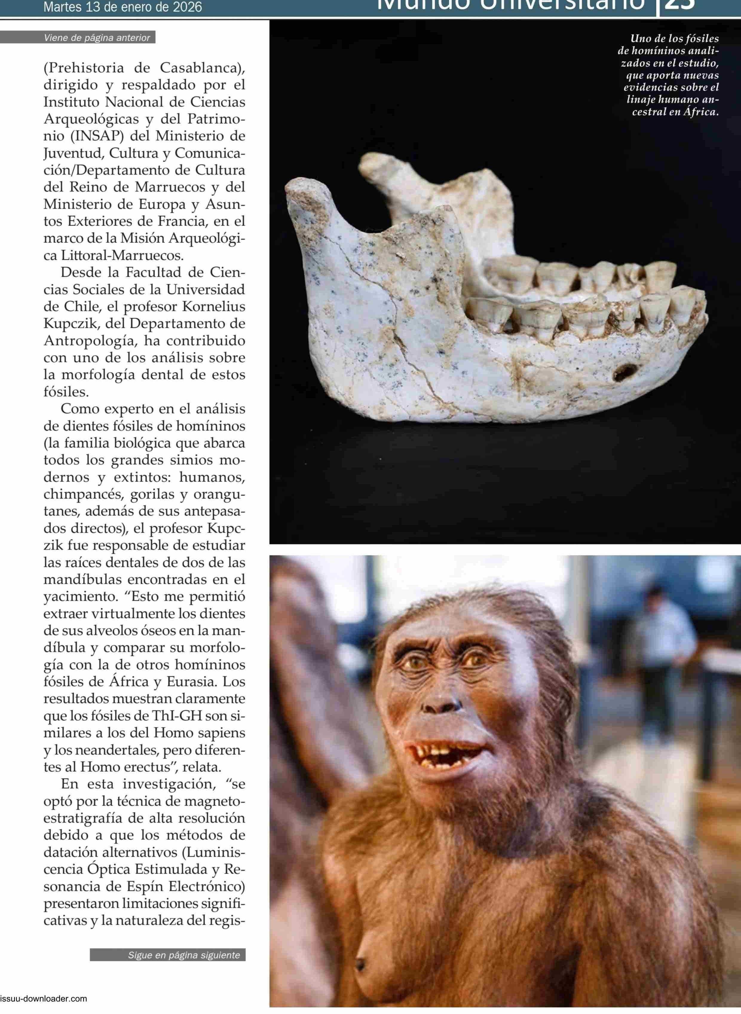Estudio con participación de académico U. de Chile revela nuevos fósiles del linaje humano en Marruecos