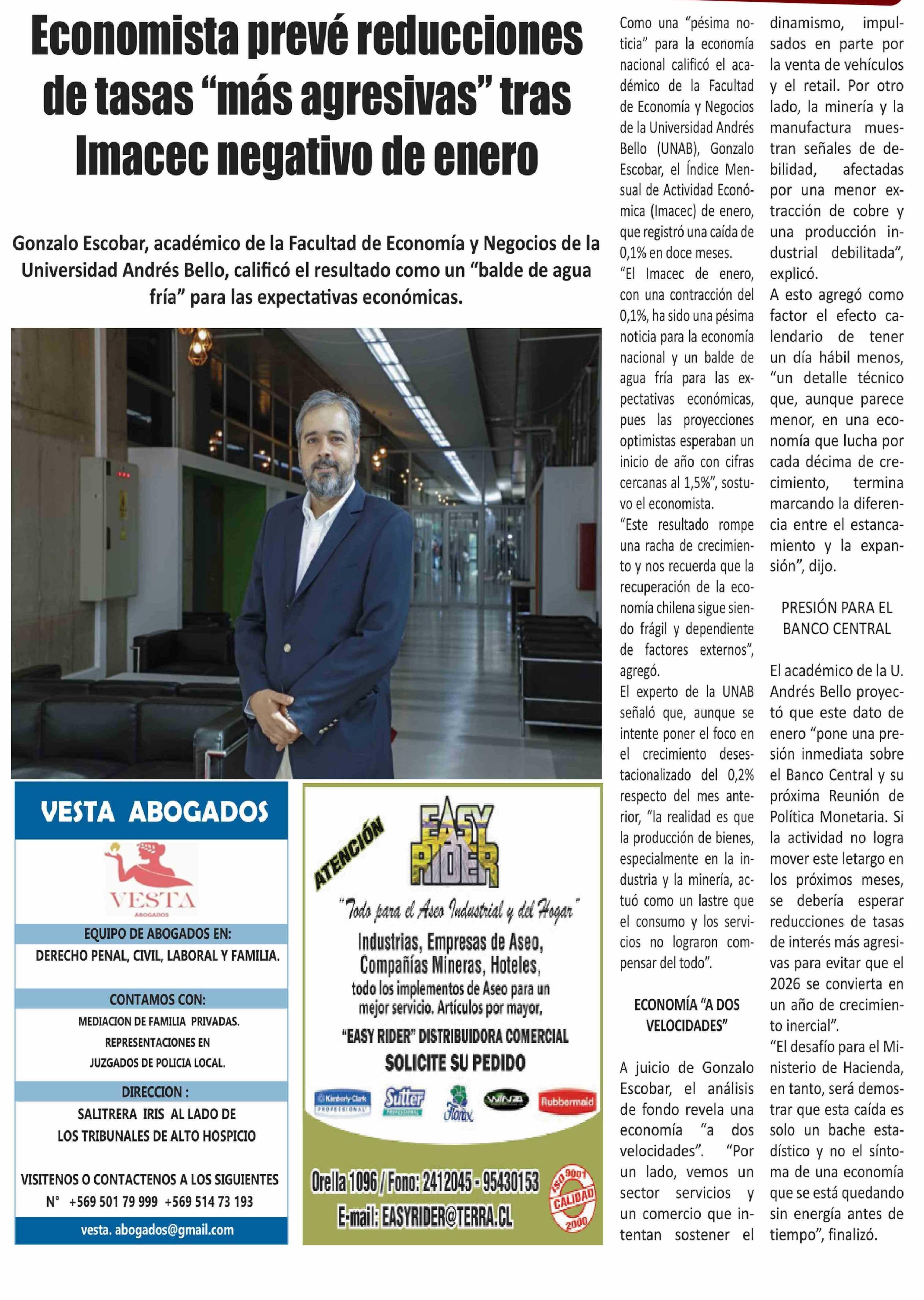Título: Economista prevé reducciones de tasas "más agresivas" tras Imacec negativo de enero