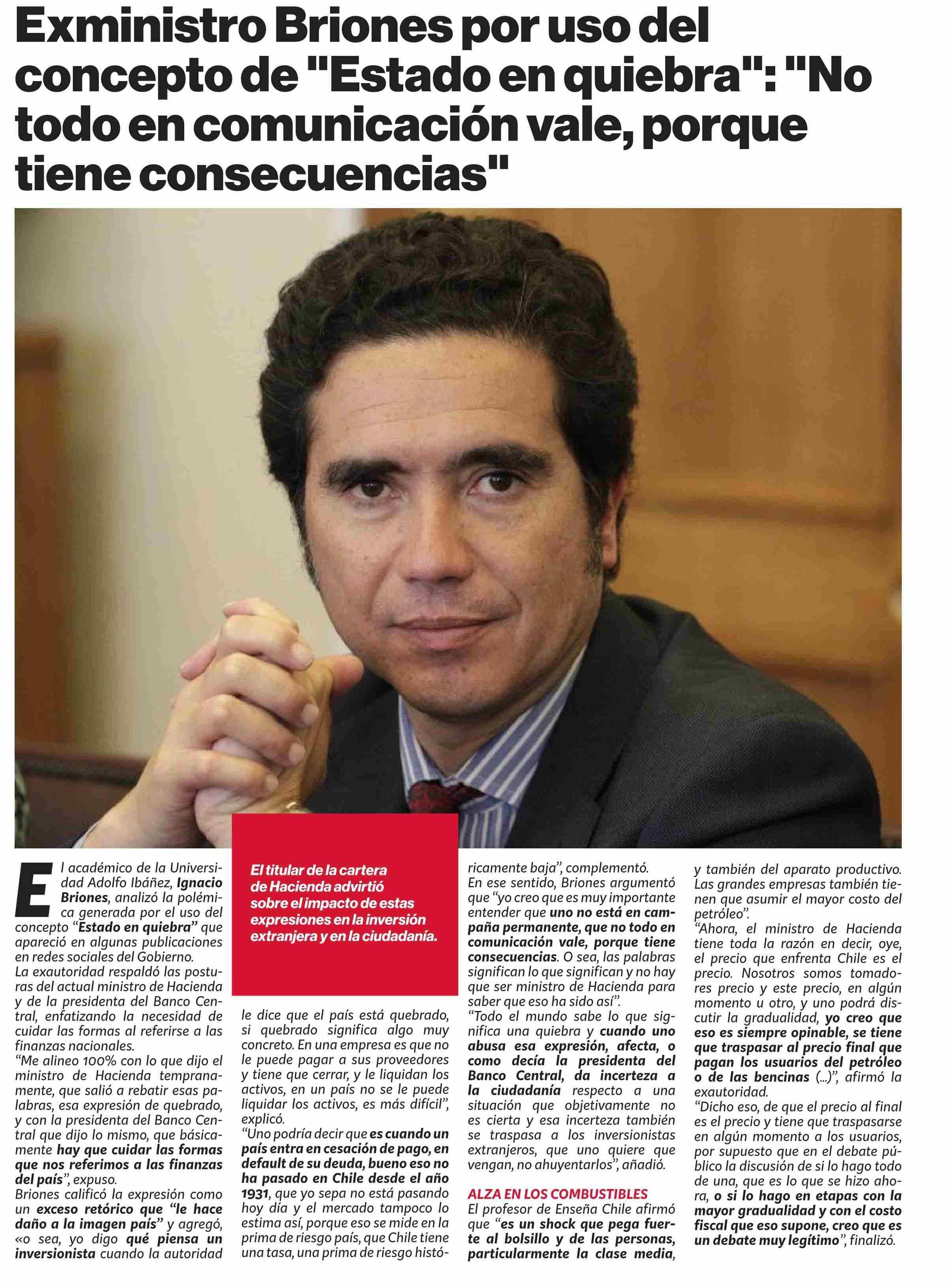 Exministro Briones por uso del de “Estado en quiebra”: “No todo en comunicación vale, porque tiene consecuencias”
