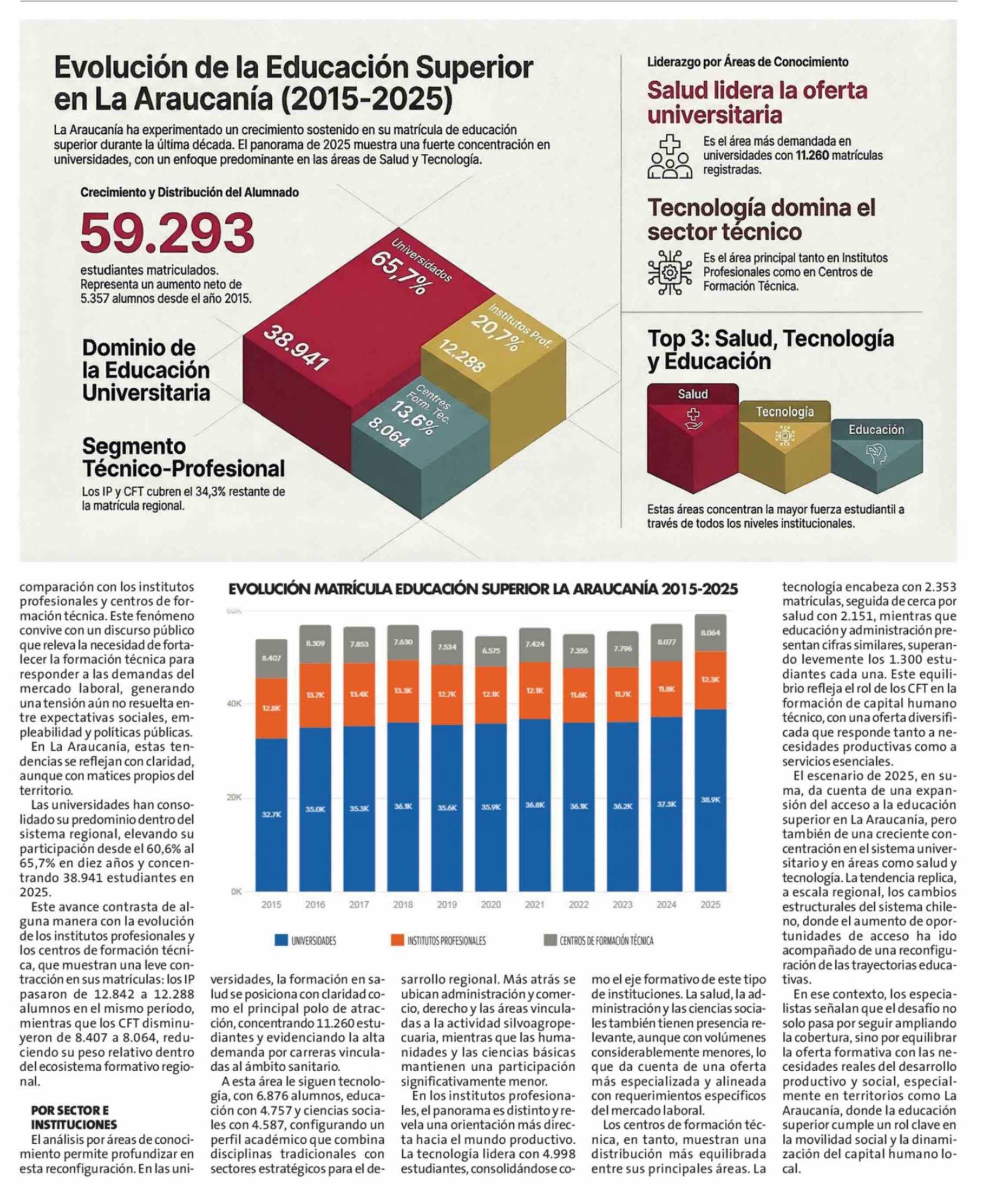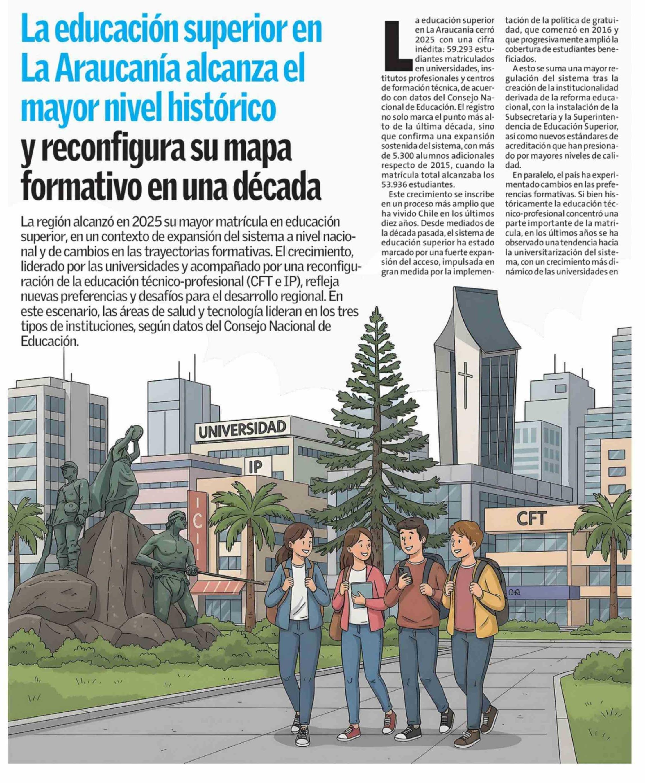 Título: La educación superior en La Araucanía alcanza el mayor nivel histórico y reconfigura su mapa formativo en una década