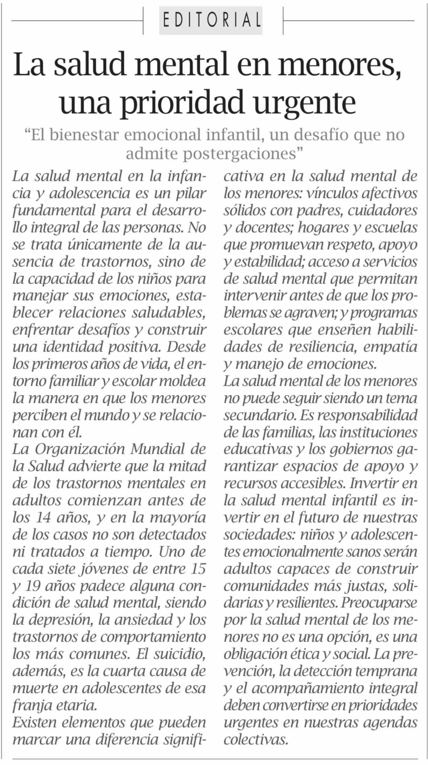 Editorial: La salud mental en menores, una prioridad urgente